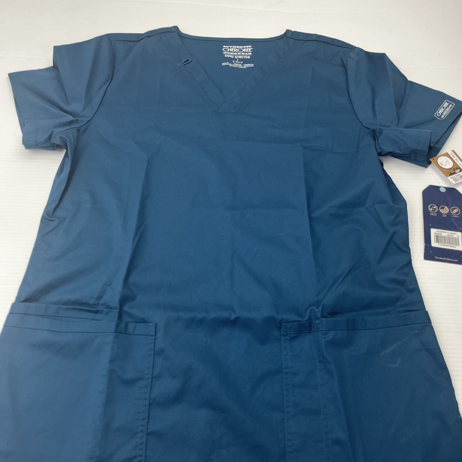 Cherokee Workwear Core Stretch Women Teal V Neck Scrub Top Size S WW630