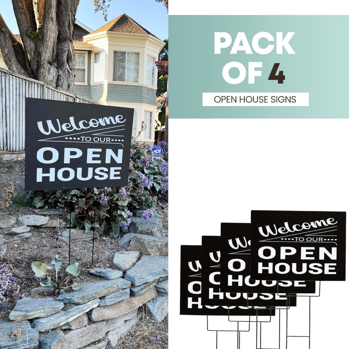Open House Real Estate Signs 18x24 4 Pack Set Double Sided