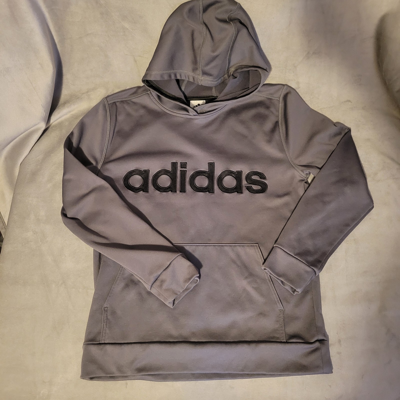 как выглядит adidas Boys Gray Pullover Hoodie Size 14/16 Long Sleeve Logo фото