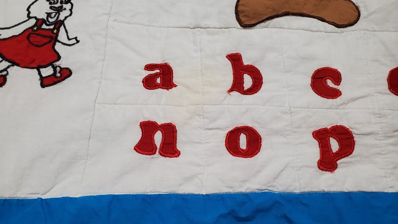 как выглядит Vtg Baby Blanket ABC Alphabet Wall Hanging Comforter Animals Embroidered Quilt фото