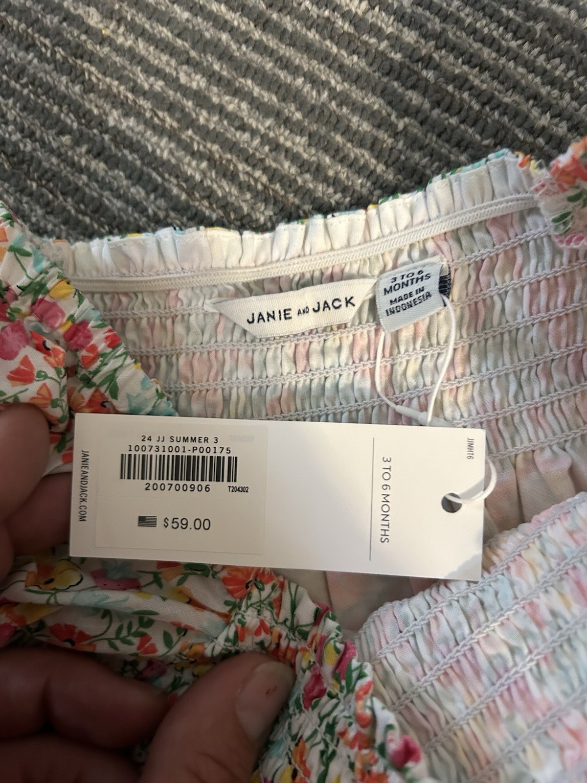 как выглядит Janie and Jack Baby Girl Dress 3-6 Months Floral Smocked Puff Sleeve Lined NWT фото