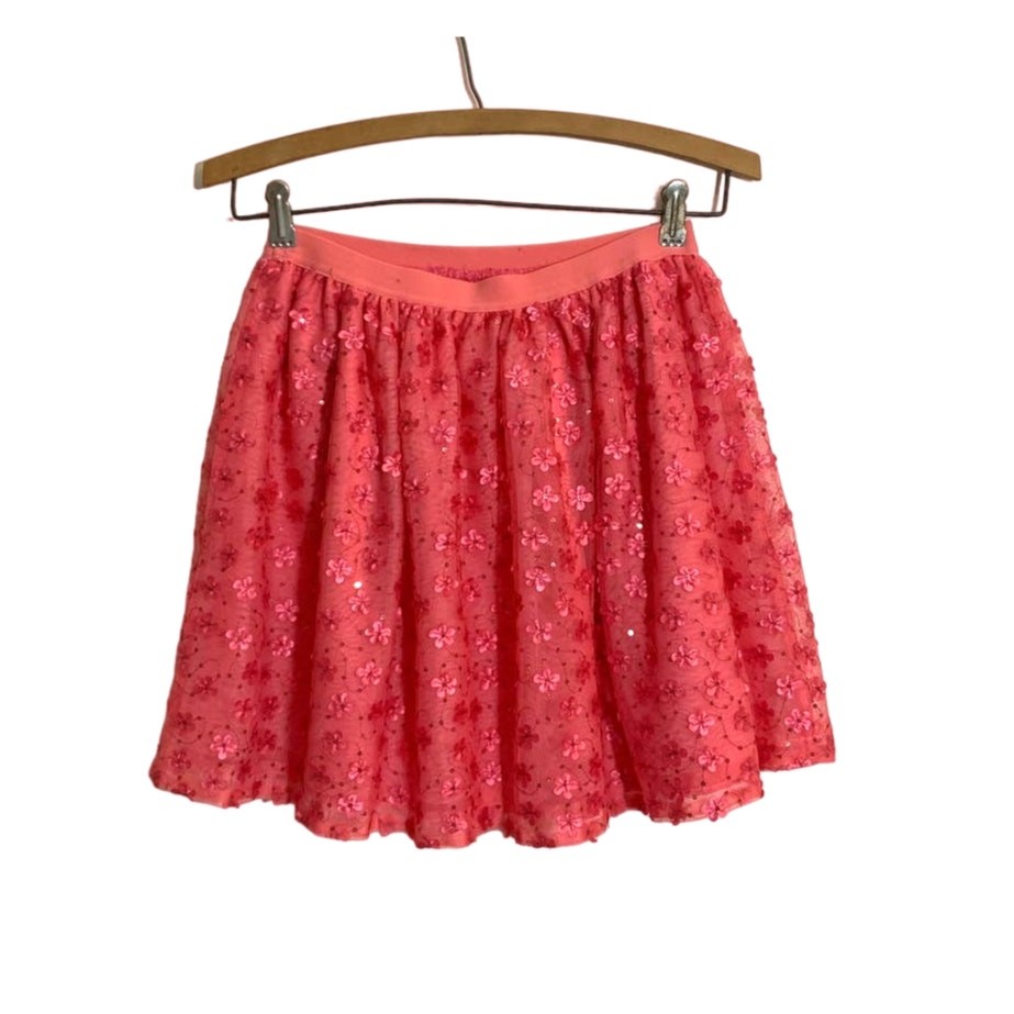 Girl's Children's Place Flower Applique and Sequin Tutu Skirt Coral Pink Size 6