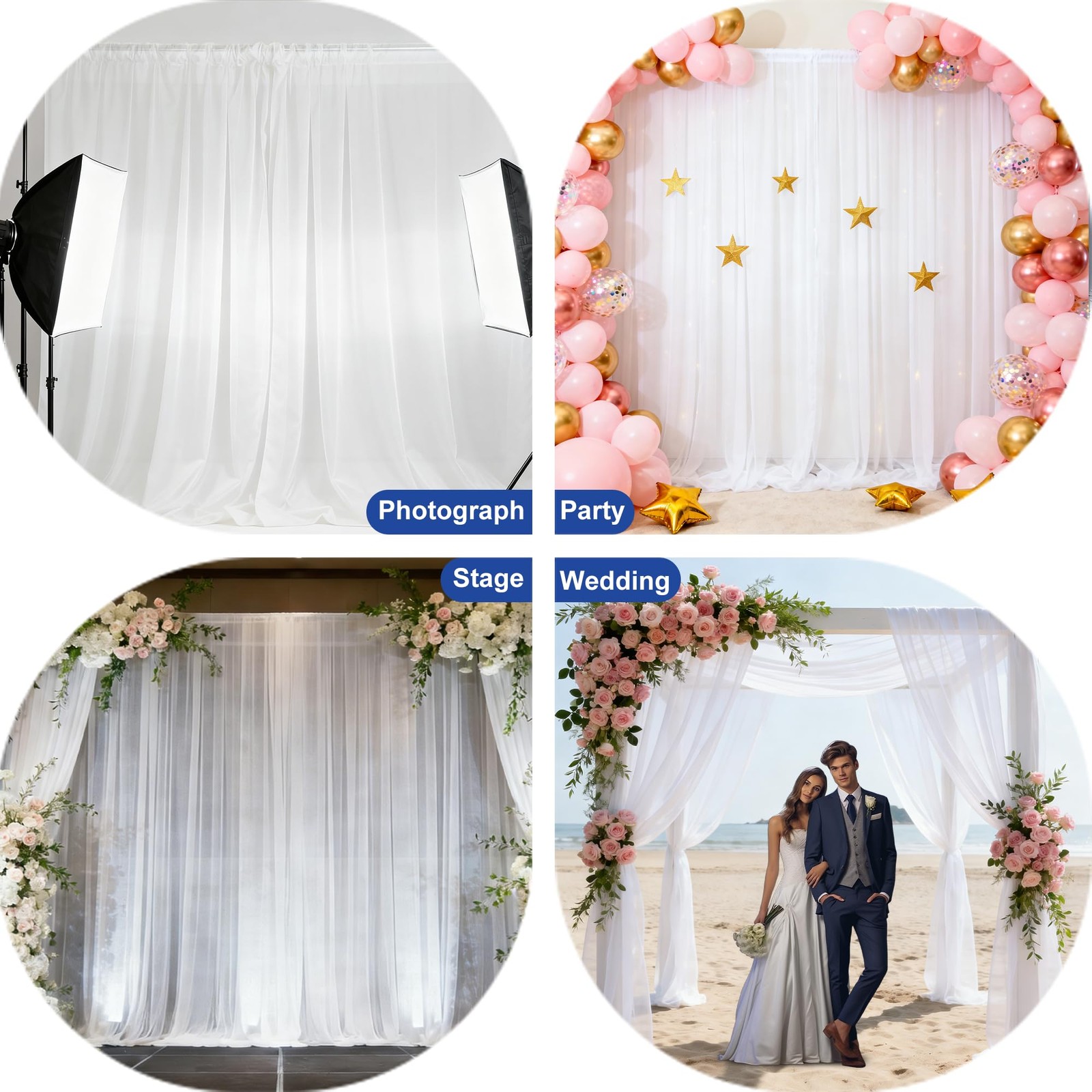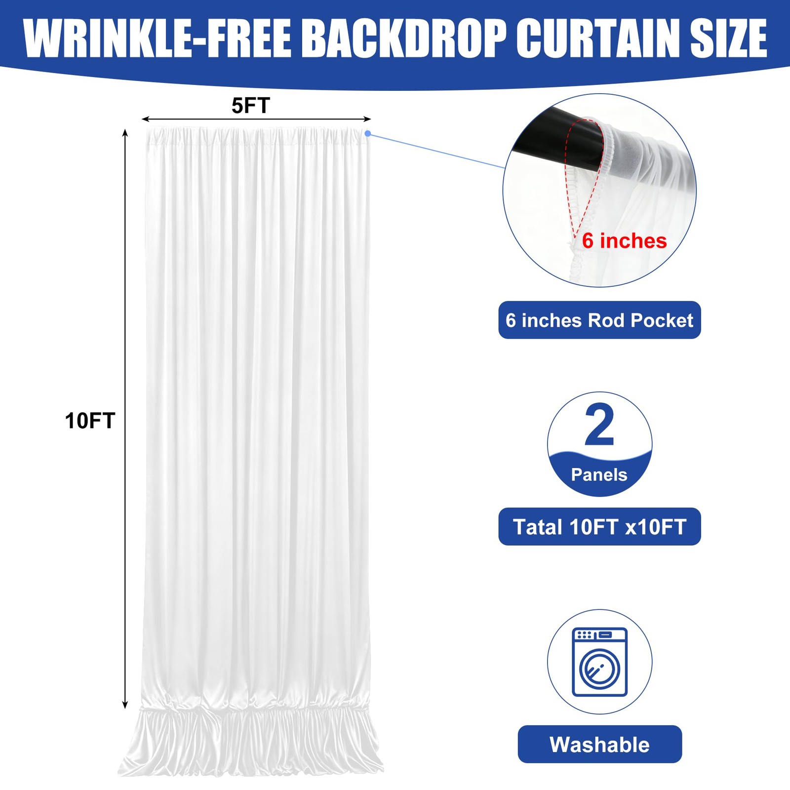Tulle Backdrop Curtains 10x10ft, 2 Panels 5x10ft, Polyester, Wrinkle-Free