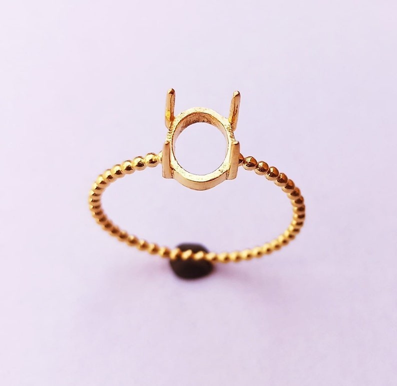как выглядит Solid 925 Sterling Silver Gold Plated Oval 8x10mm Prong Bezel Ring Blank фото