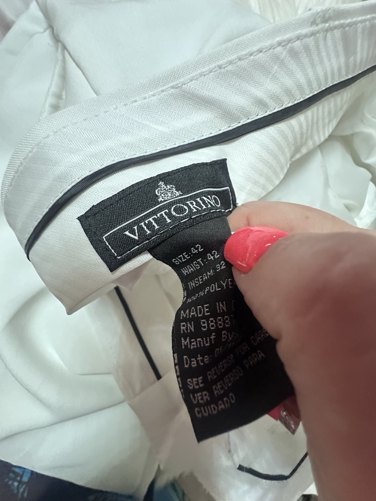 как выглядит VITTORINO Men s 42/32 White Pleated 100 Polyester Slacks фото