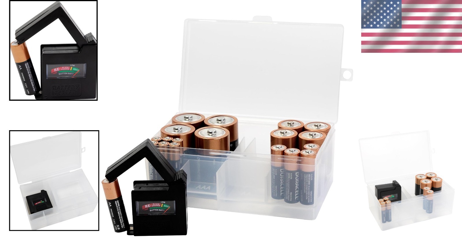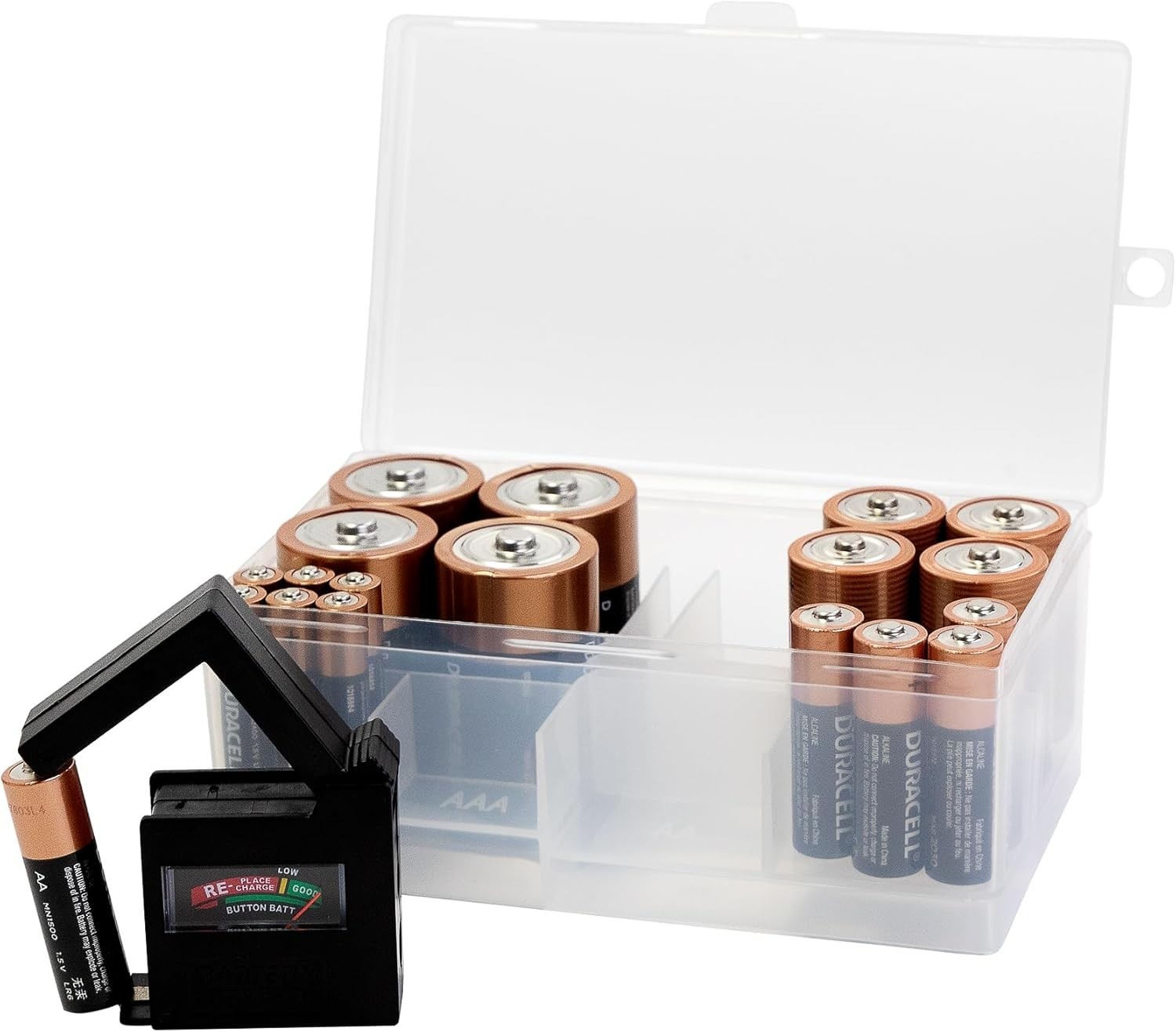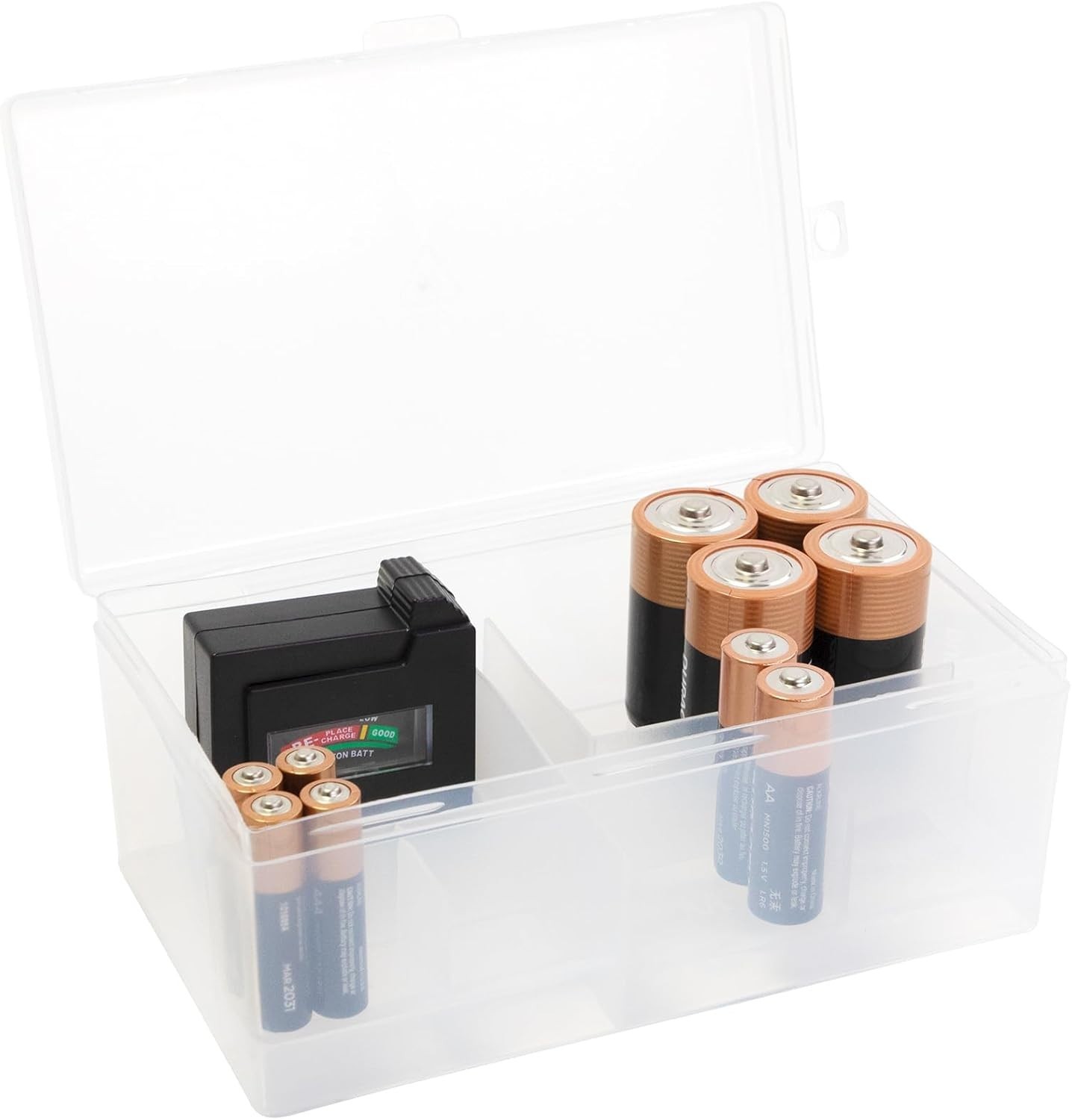 Durable Battery Storage Tester Case: 12 AAA, 12 AA, 6 C, 4 D Compartment Style