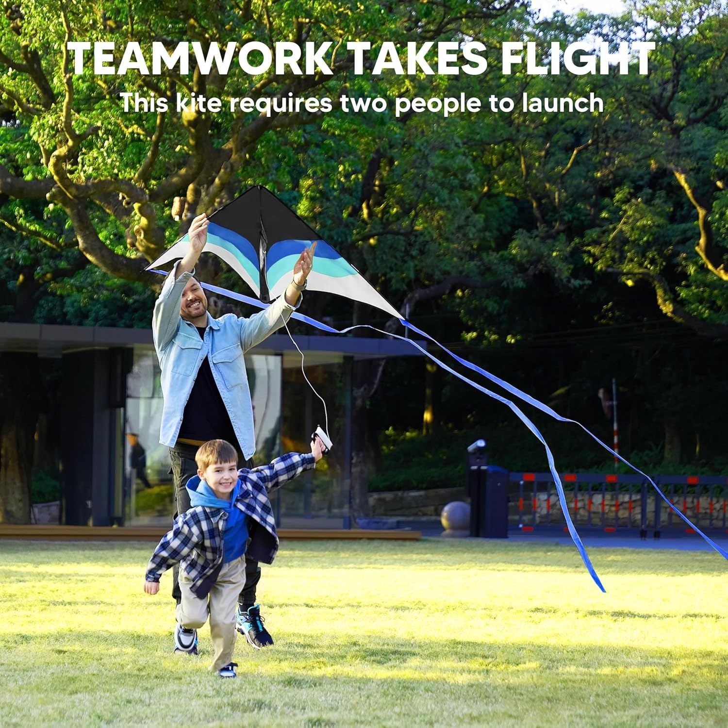 Large Delta Kite Yellow Easy Fly 328ft String for Kids Adults Beach Fun Outdoor