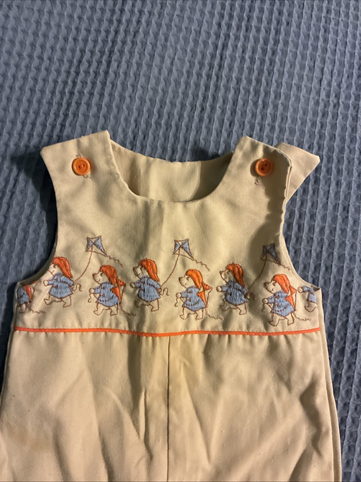 как выглядит Vintage Winnie The Pooh Embroidery Overalls Baby 18mo One Piece Tan USA Made фото