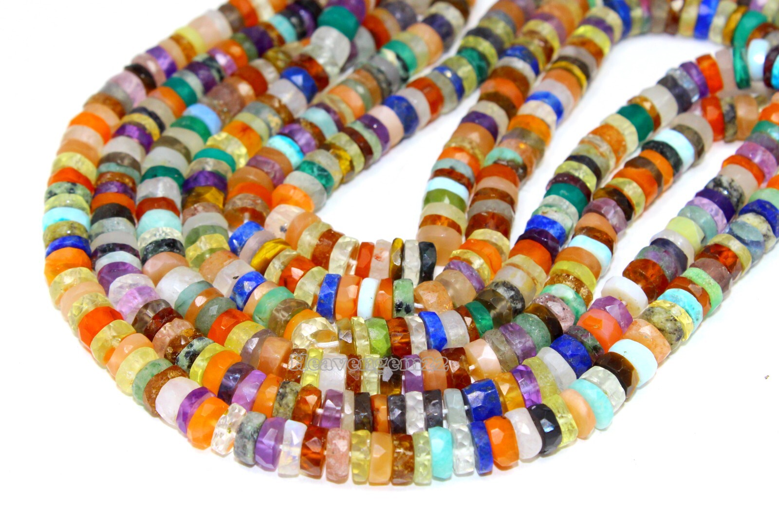 Natural Mix Gemstone Faceted Rondelle Heishi Beads 6-7mm 8 Strand AAA