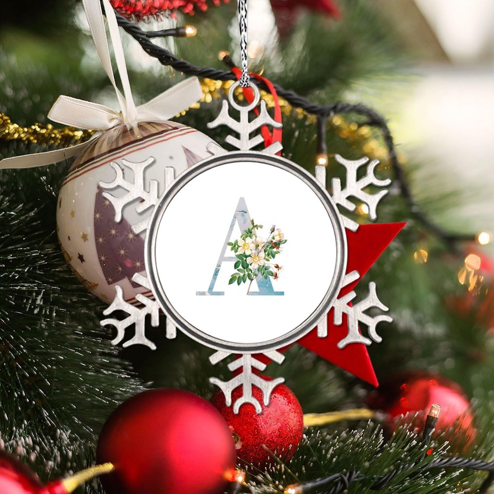 LITTLEGROVE SEEDS Monogram Initial Letter A Snowflake Ornaments 3 inch, A