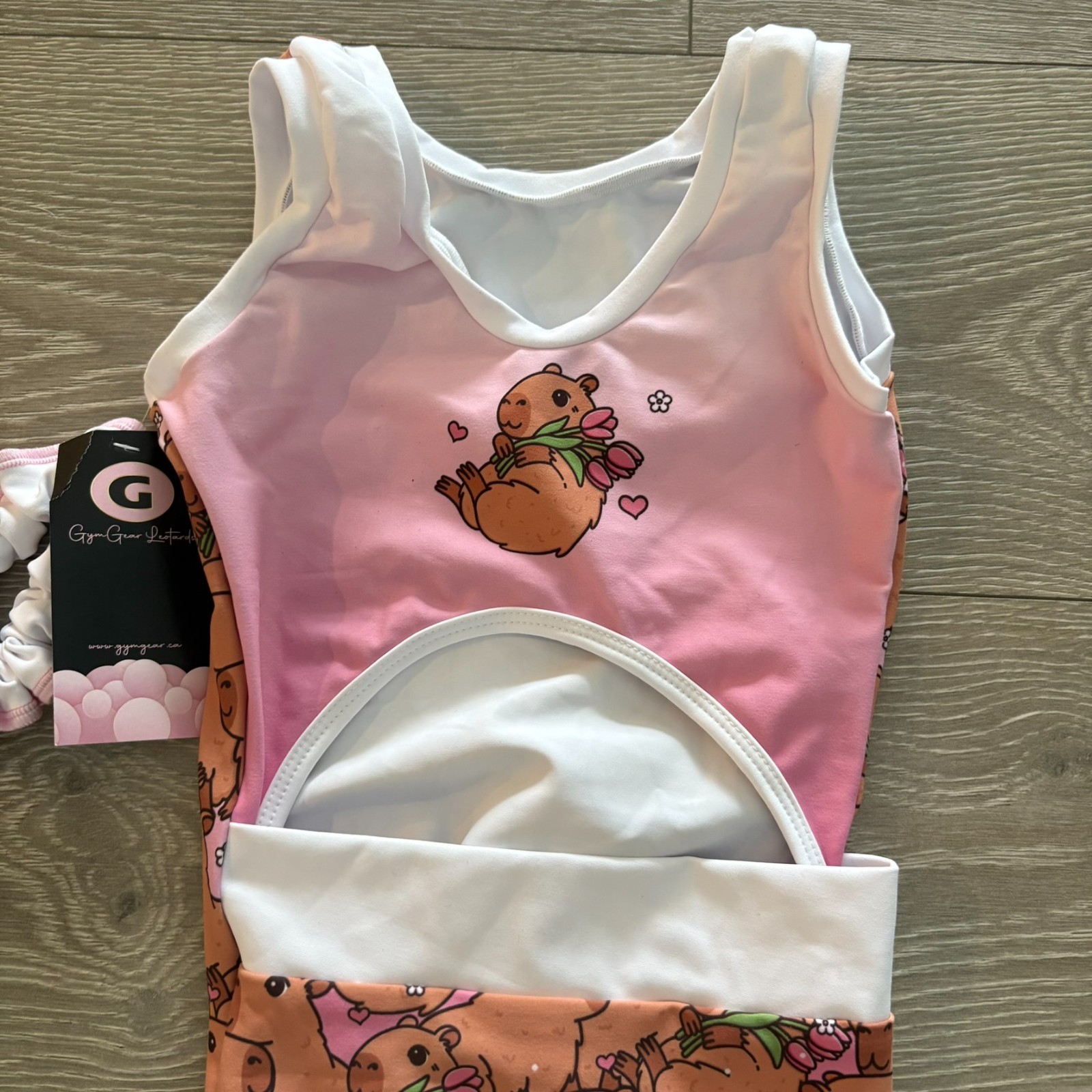 NWT Gym Gear Kids Brown Cluster of Capys Gymnastics/Dance Leotard Size Medium 8