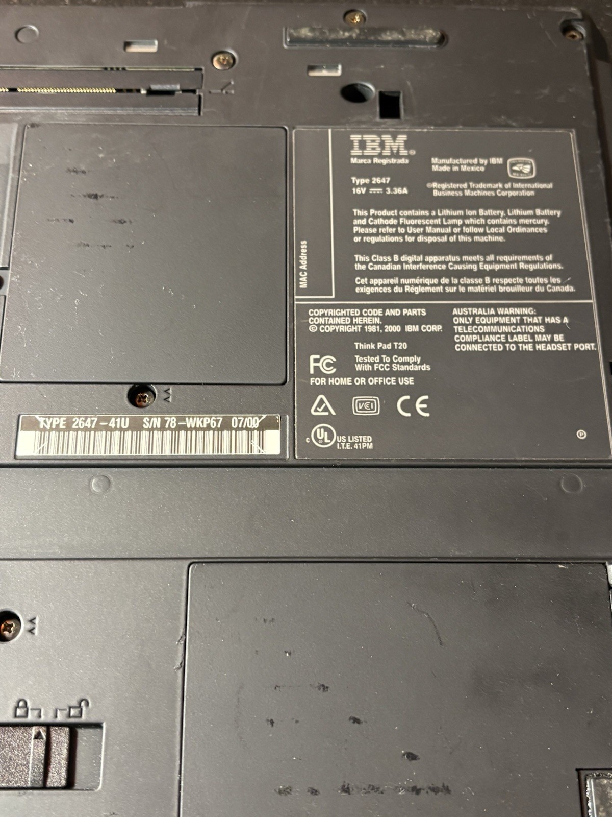 Модель: IBM ThinkPad T20