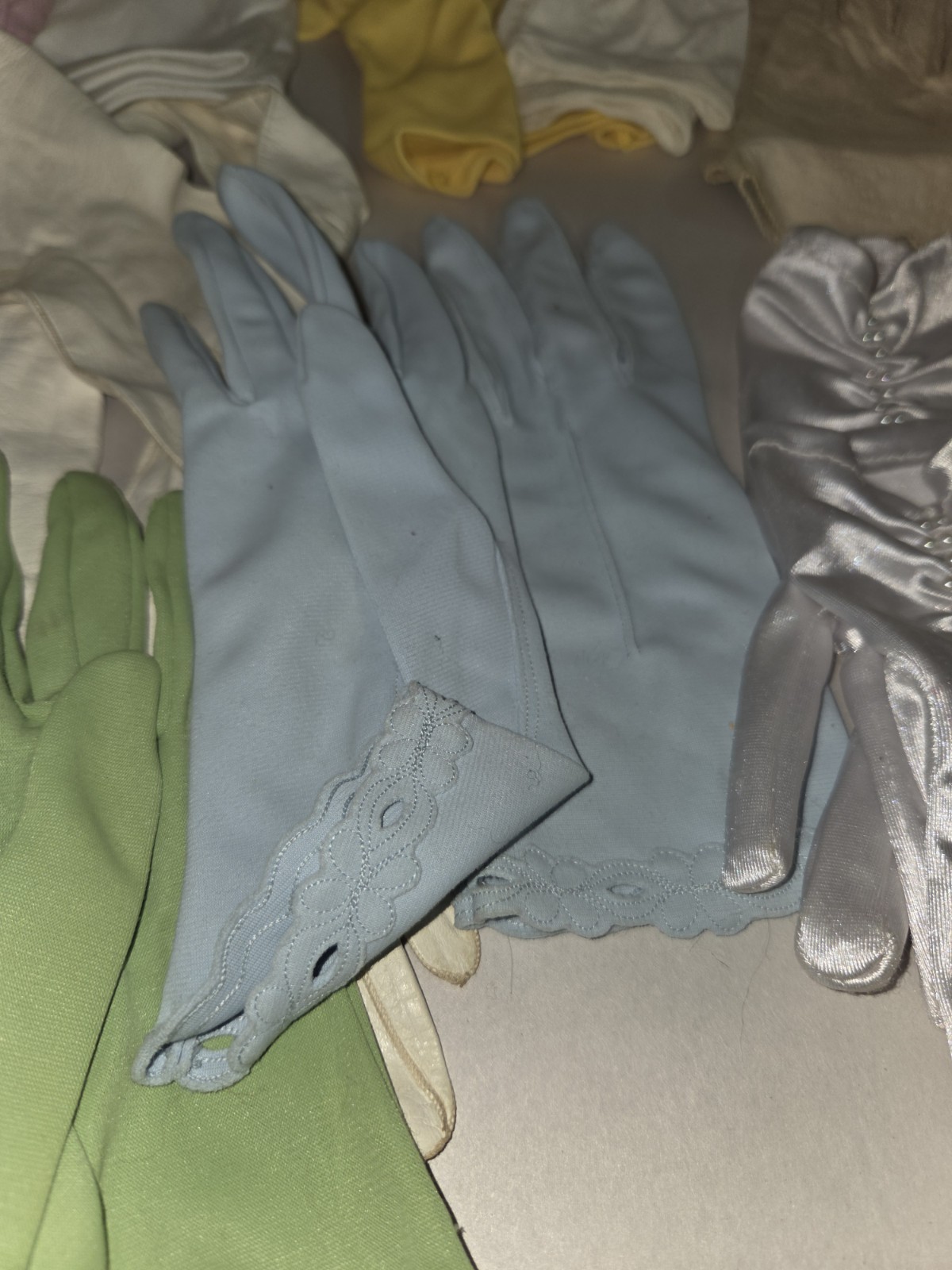 как выглядит Ladies Dress Gloves Lot Vintage 11 Pairs Pink Yellow Blue Beige Brown White фото