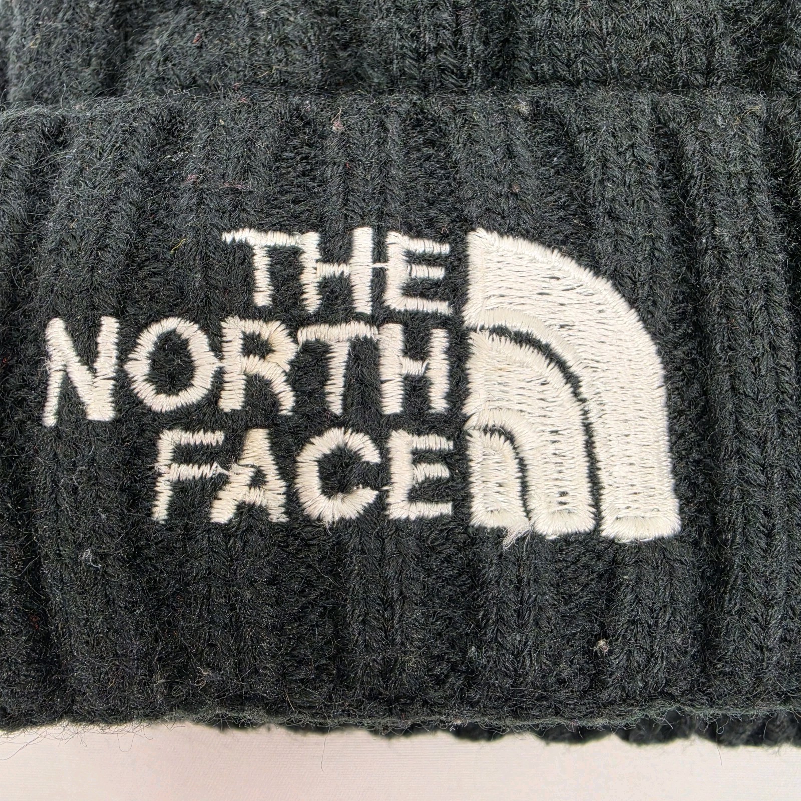 The North Face Beanie Black White Logo Knit Cuffed Fleece Lined OSFA Winter Hat