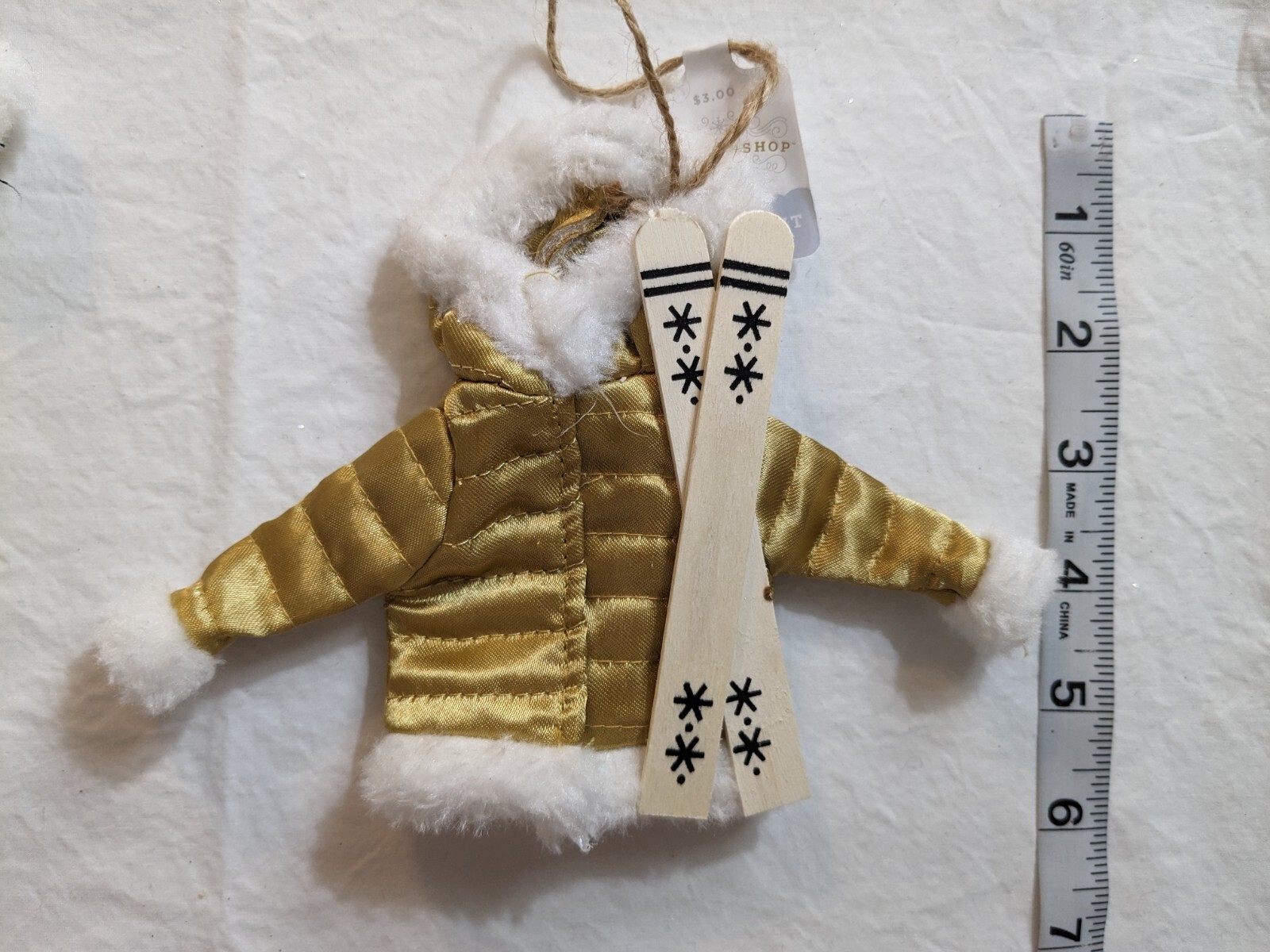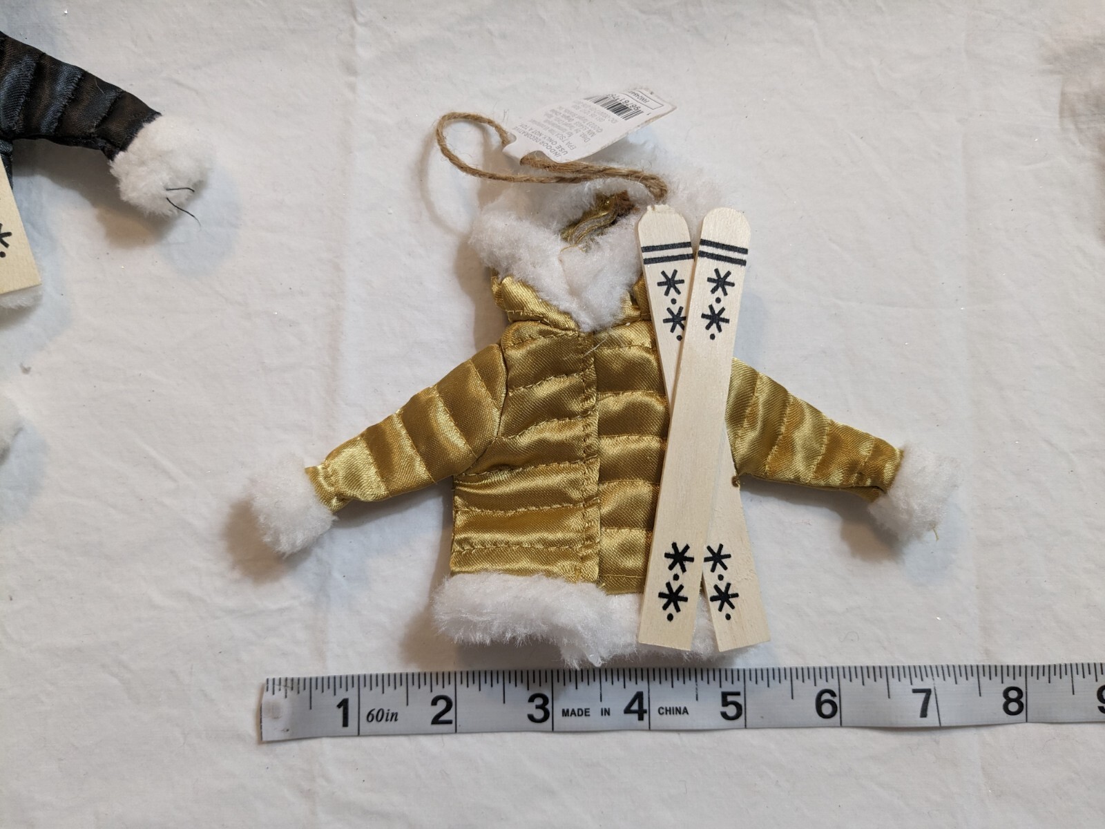 как выглядит Target 2023 Wondershop 3 Ornaments Ski Jacket and Skis Black Gold White Xmas фото