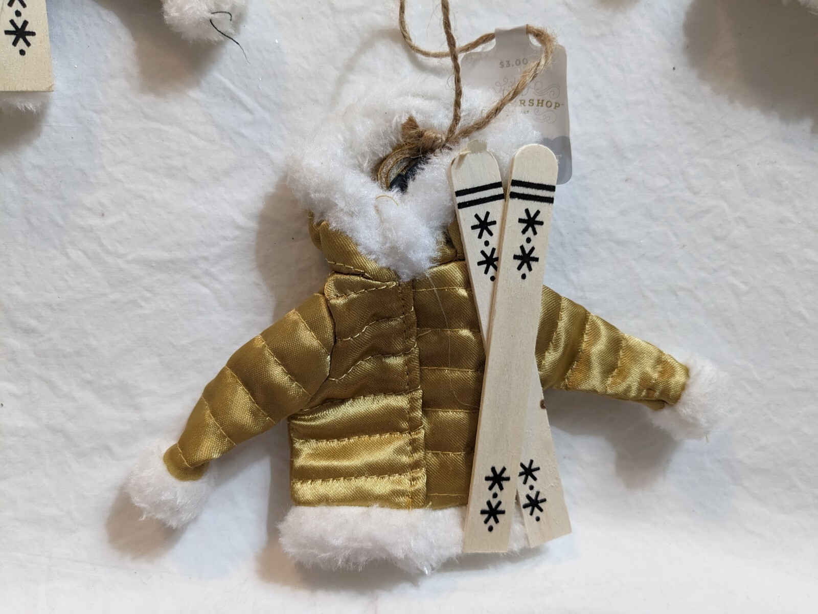 • Target 2023 Wondershop 3 Ornaments Ski Jacket and Skis Black Gold White Xmas