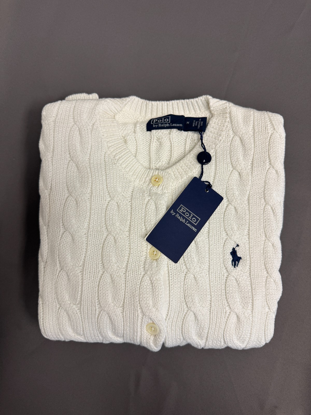 Women's Medium/Polo Ralph Lauren Cotton Cable Knit Cardigan White
