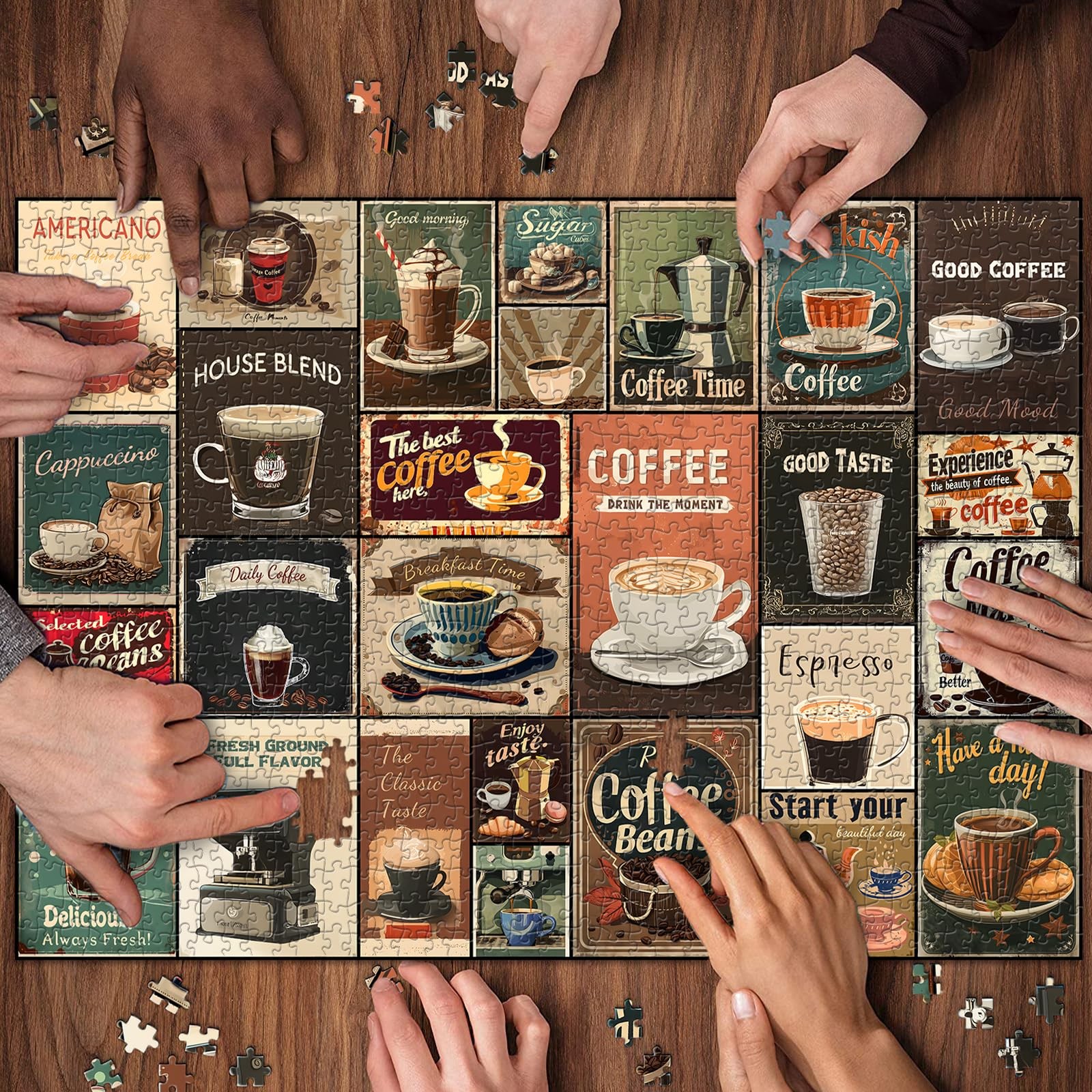 1000 Piece Puzzle Vintage Coffee Collage Kitchen Art Jigsaw For Adults Large