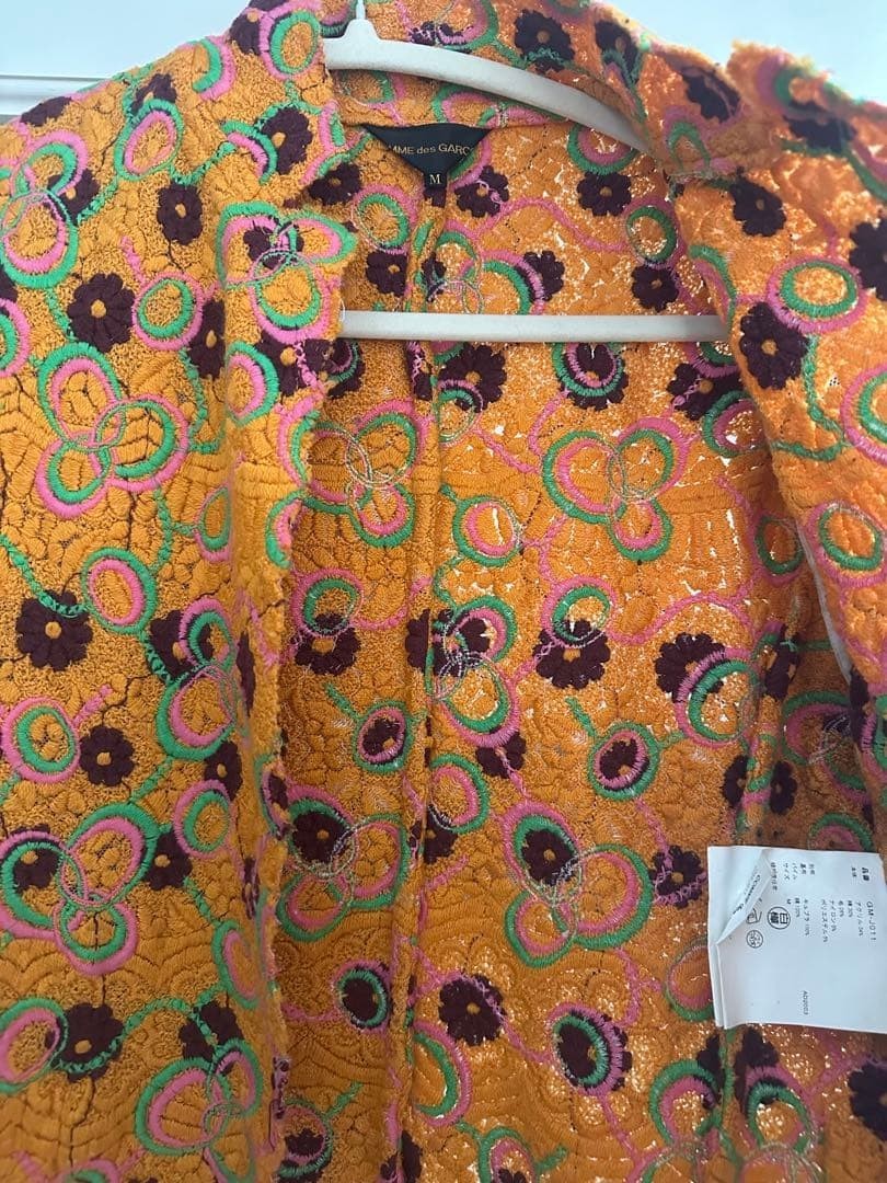 как выглядит COMME des GARCONS 2003 AW Archive Floral Pile Jacket Orange Pink Japan Made M фото