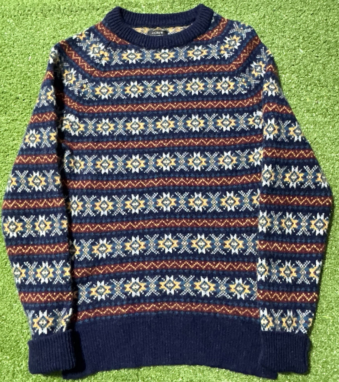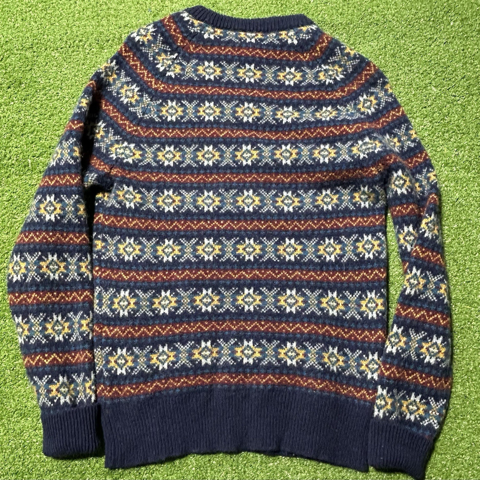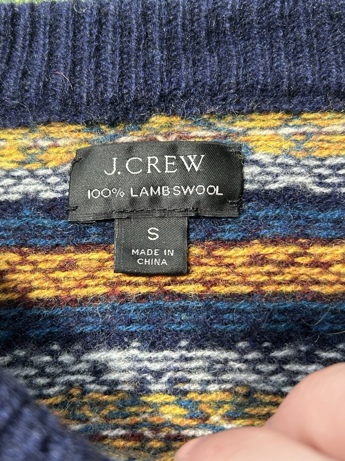 как выглядит J Crew Lambs Wool Nordic Fair Isle Sweater Small Red Blue Crew Neck Pullover фото