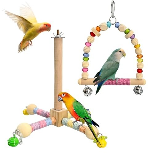 2 Pcs Bird Toys with 9 Perch 7.8 Swing, Wooden Cage Accessories for Parrots