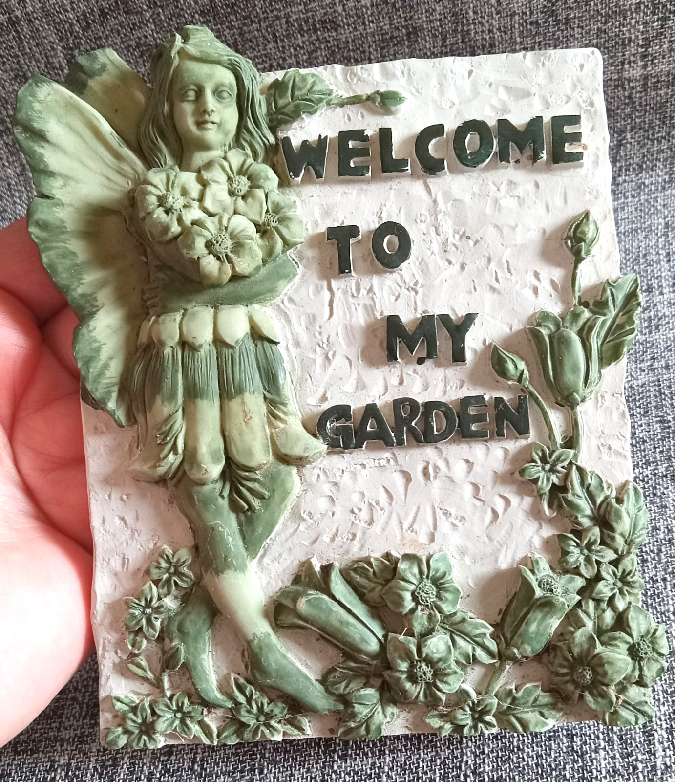 как выглядит Vtg " Welcome to my Garden " Plaque Decor Fairy Sign Outdoor/Indoor Adorable фото