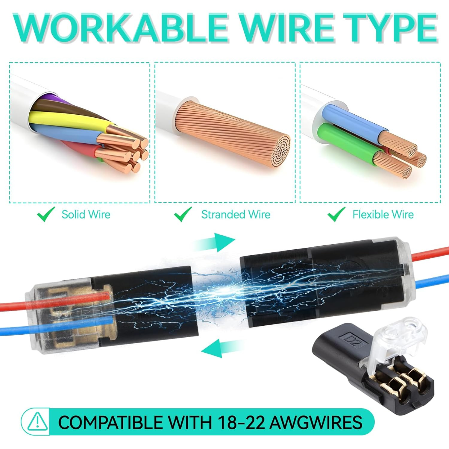 как выглядит 100Pcs Double Wire Plug in Connector, 2-Pin Low Voltage Wire Connectors with Loc фото