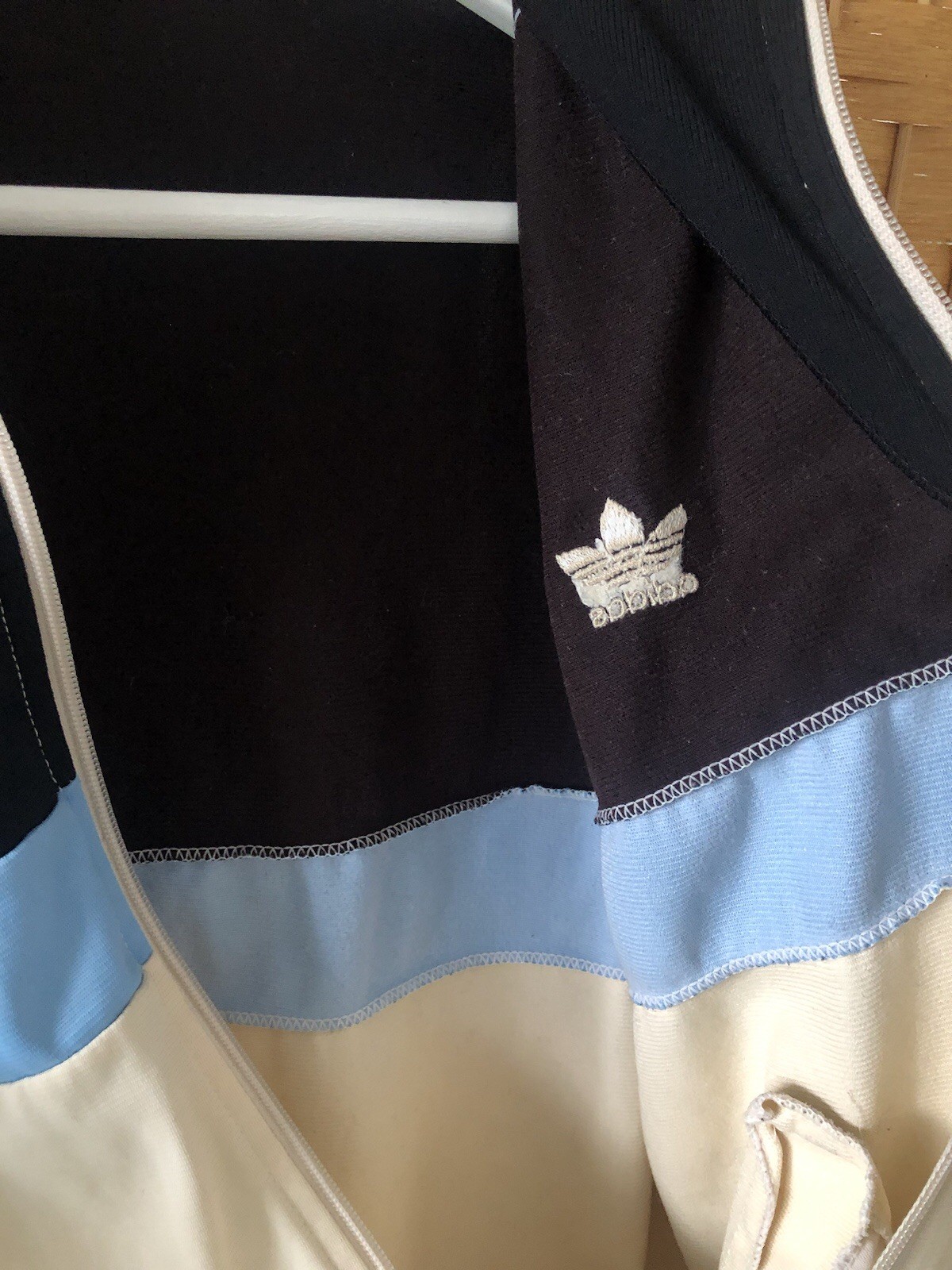 как выглядит Vintage 70/80s Adidas Ventex blue beige 3 Stripes Track Jacket Size S / M, ATP фото