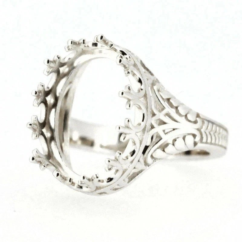 Sterling Silver Semi Mount Ring Setting Oval 16x12mm Cabochon Art Deco Style
