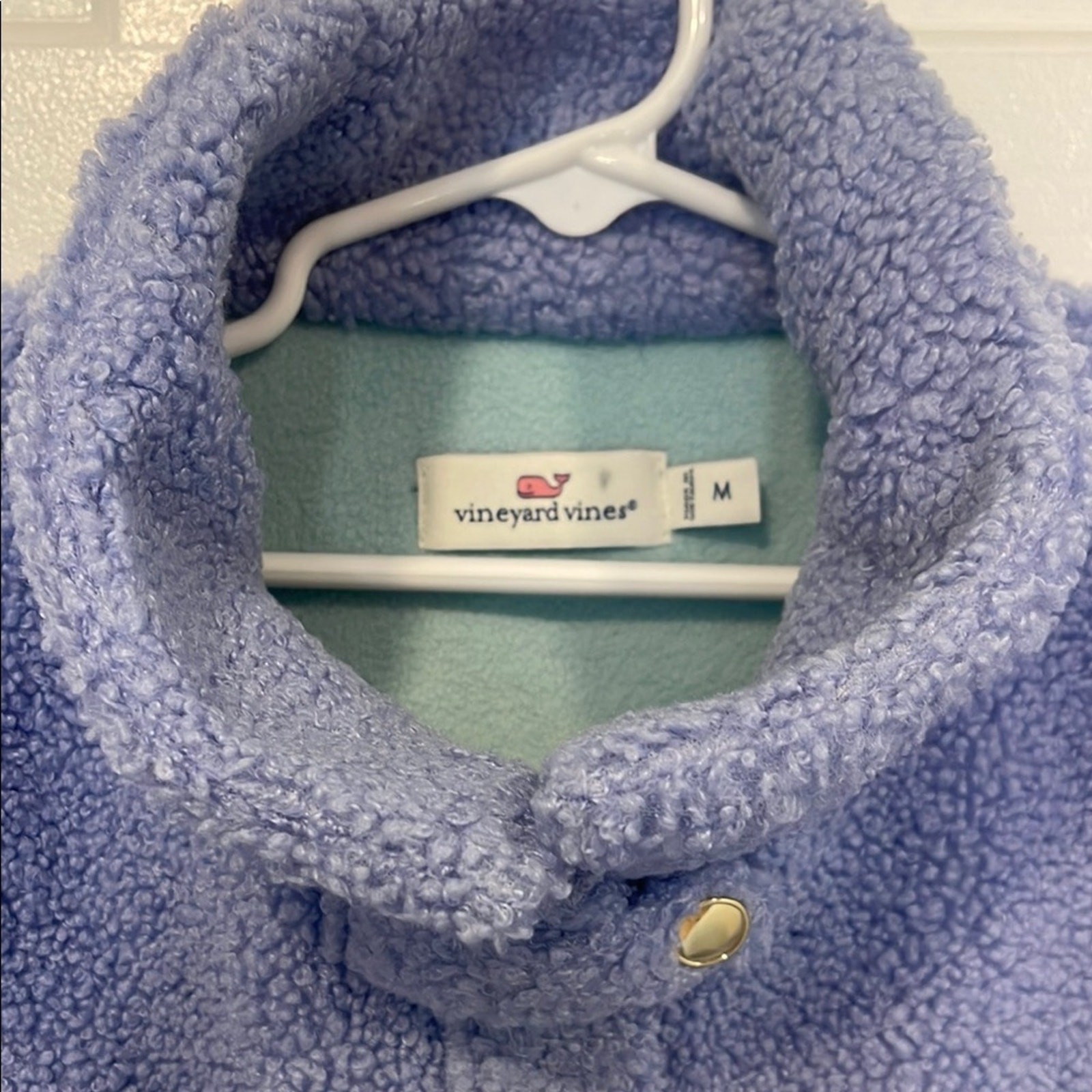 как выглядит Vineyard Vines Kids Sherpa Fleece Vest Blue Pockets Snap Collar Size M фото