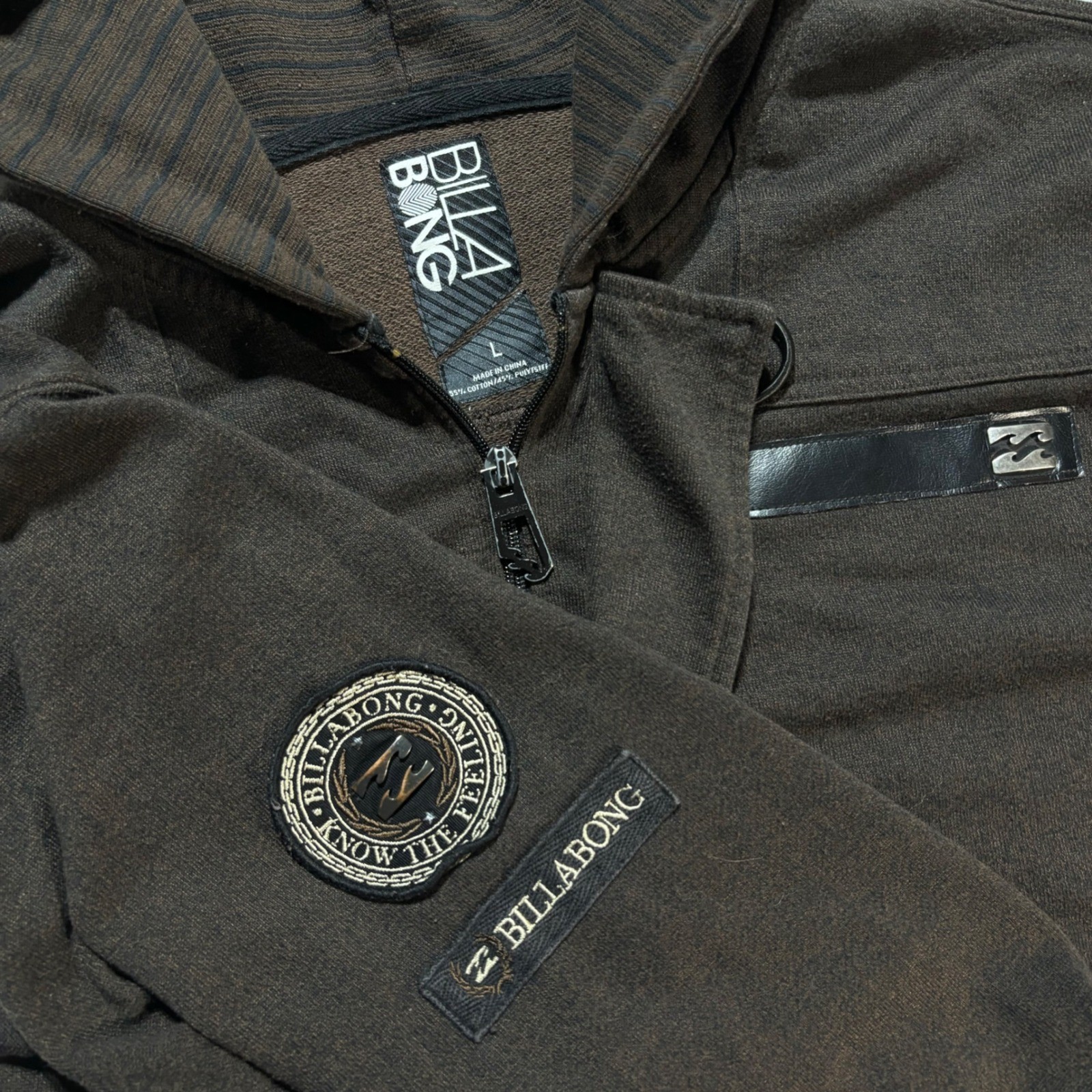 Vintage Billabong Full Zip Hoodie Men's Large Brown Patch Surf Skate 2000s Y2K