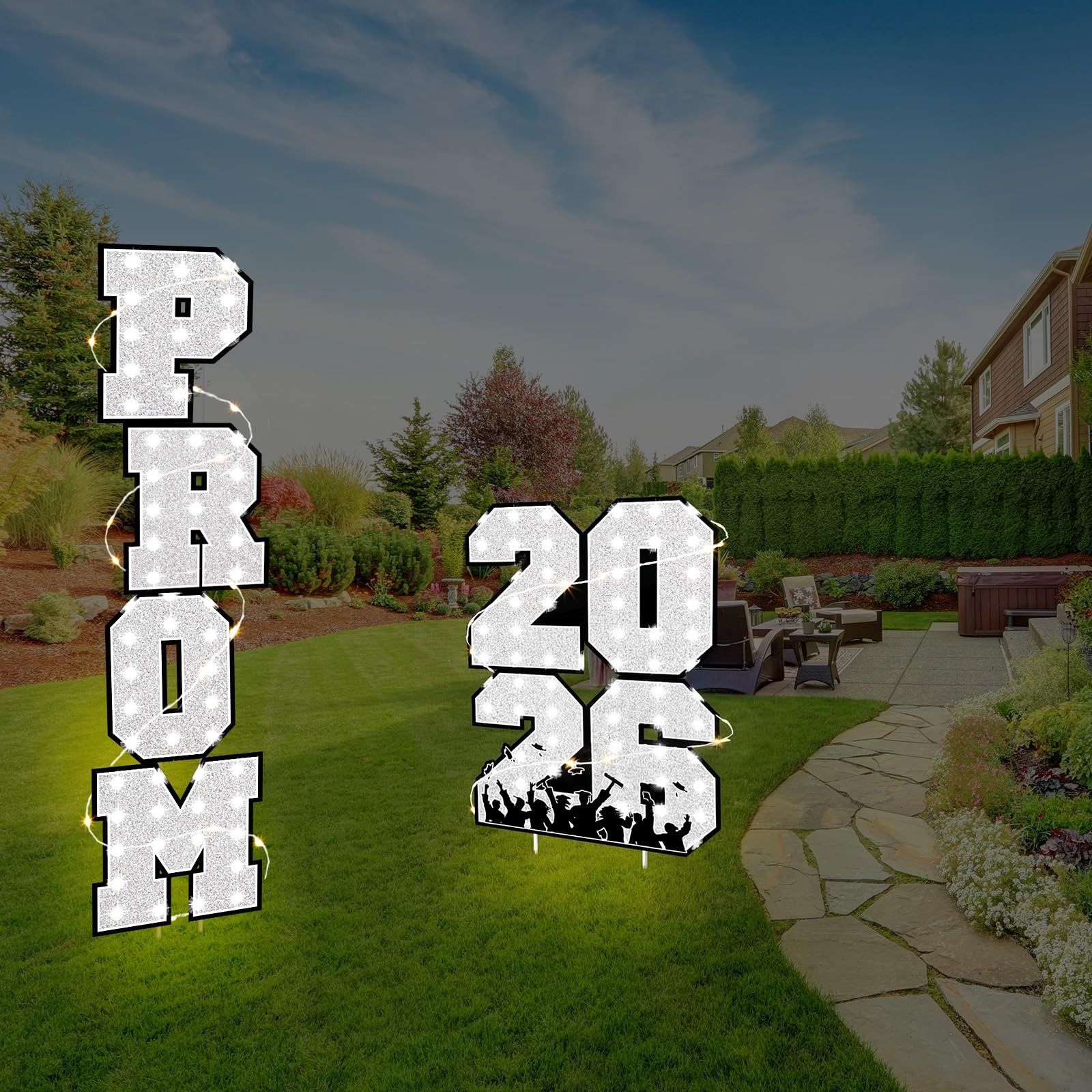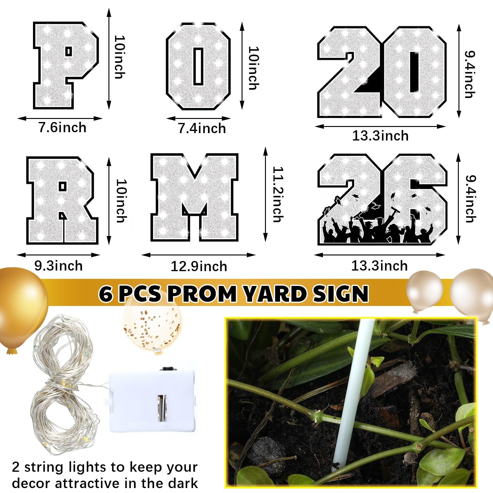 6 Pcs Prom 2026 Yard Signs Party Outdoor Lawn Decorations with Light String Prom