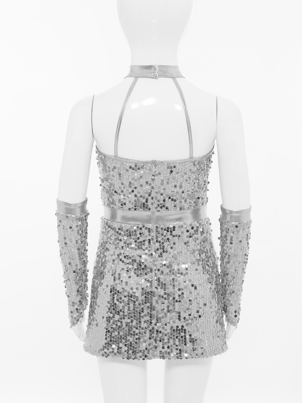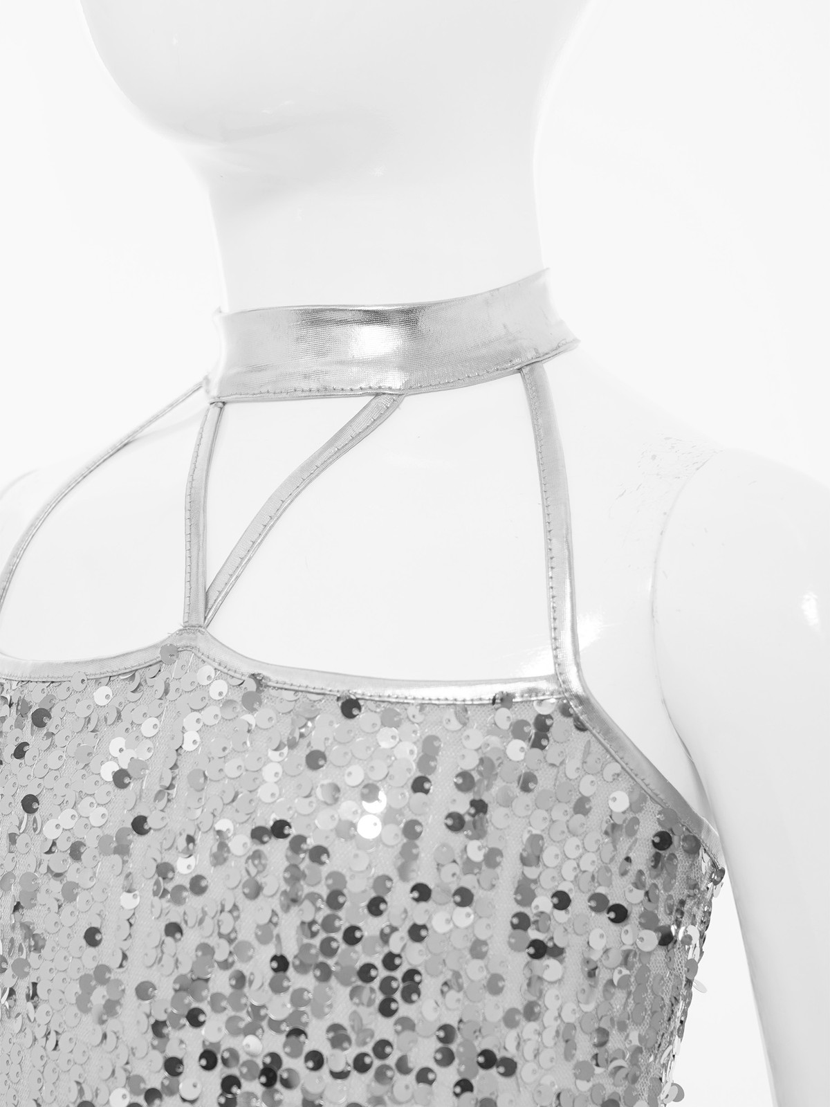 Kids Girls Dancewear Sleeveless Dress Ballet Dance Dress Sequins Costume Rumba