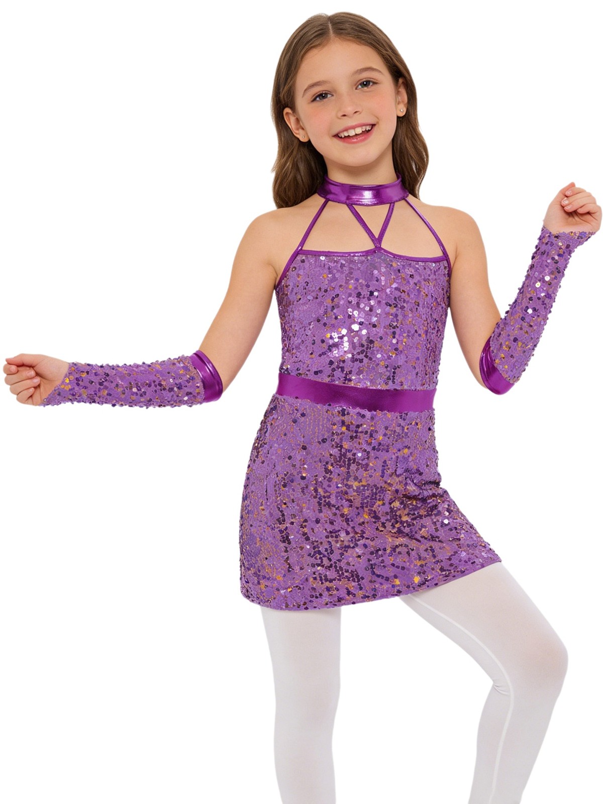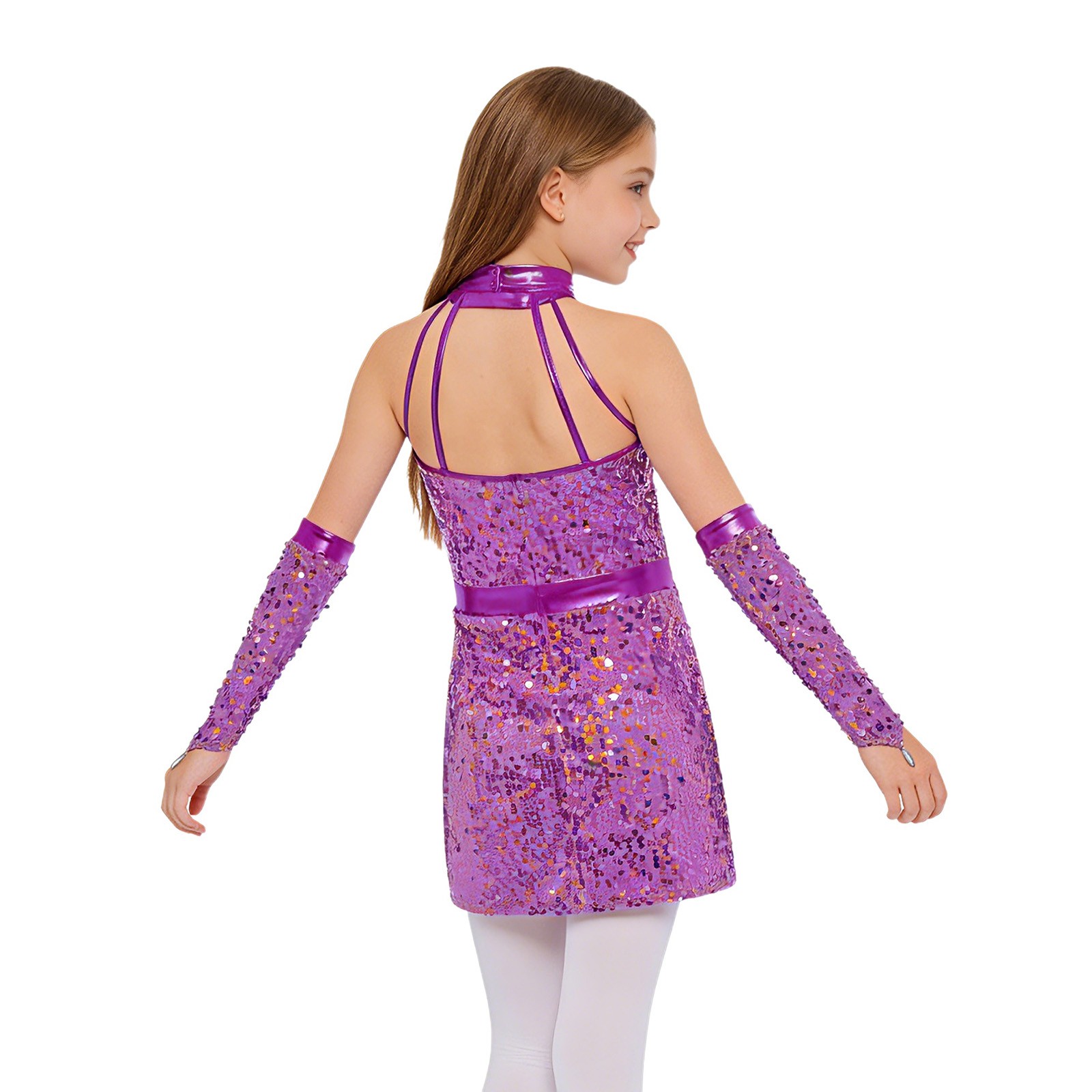 Kids Girls Dancewear Sleeveless Dress Ballet Dance Dress Sequins Costume Rumba