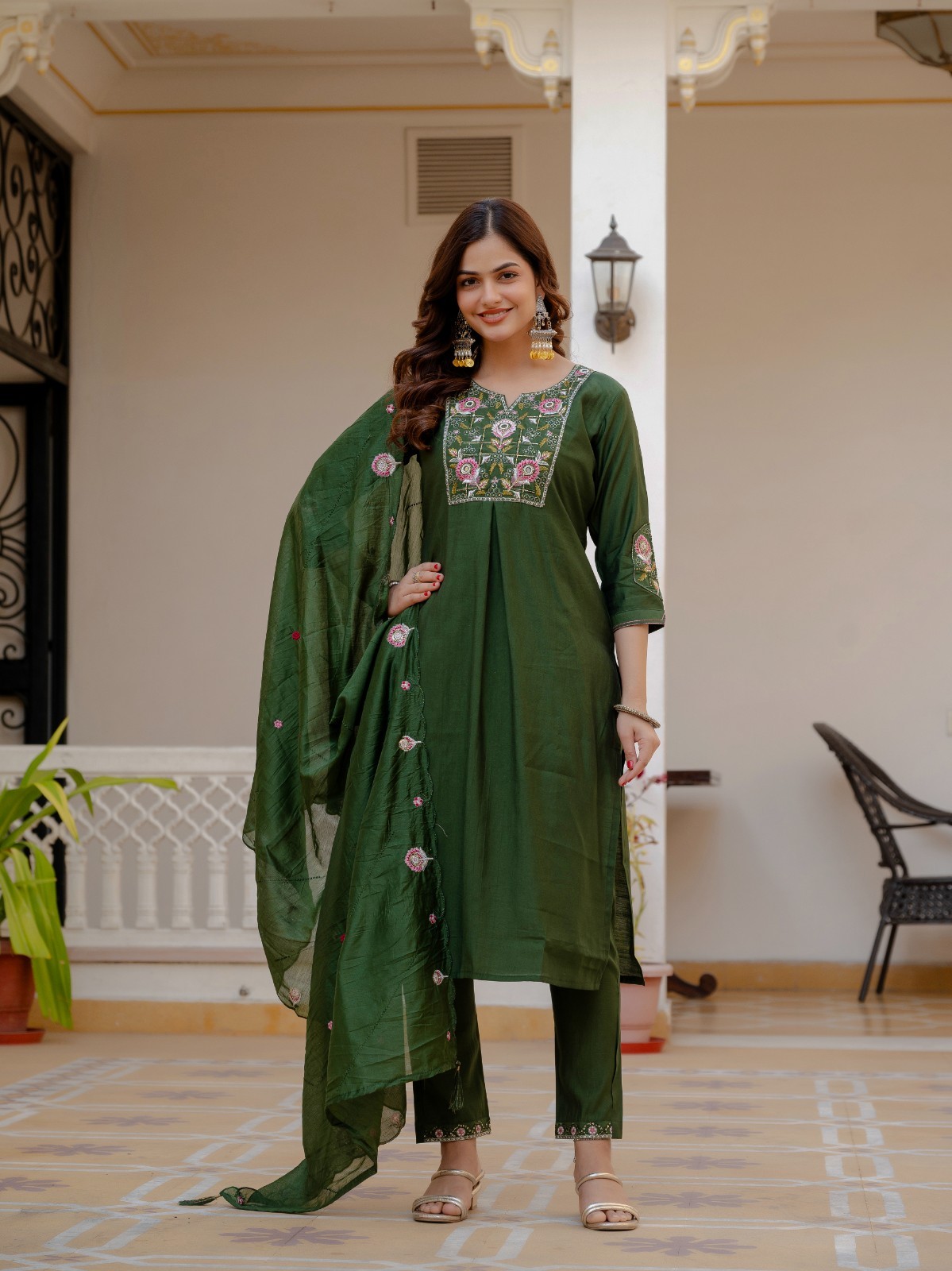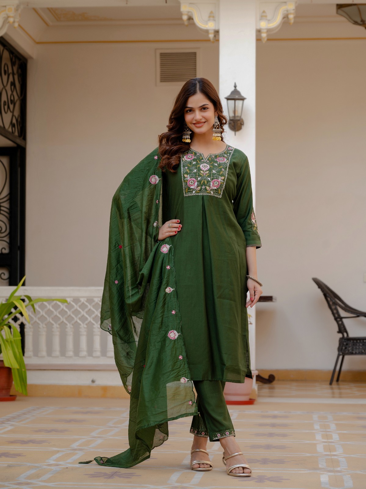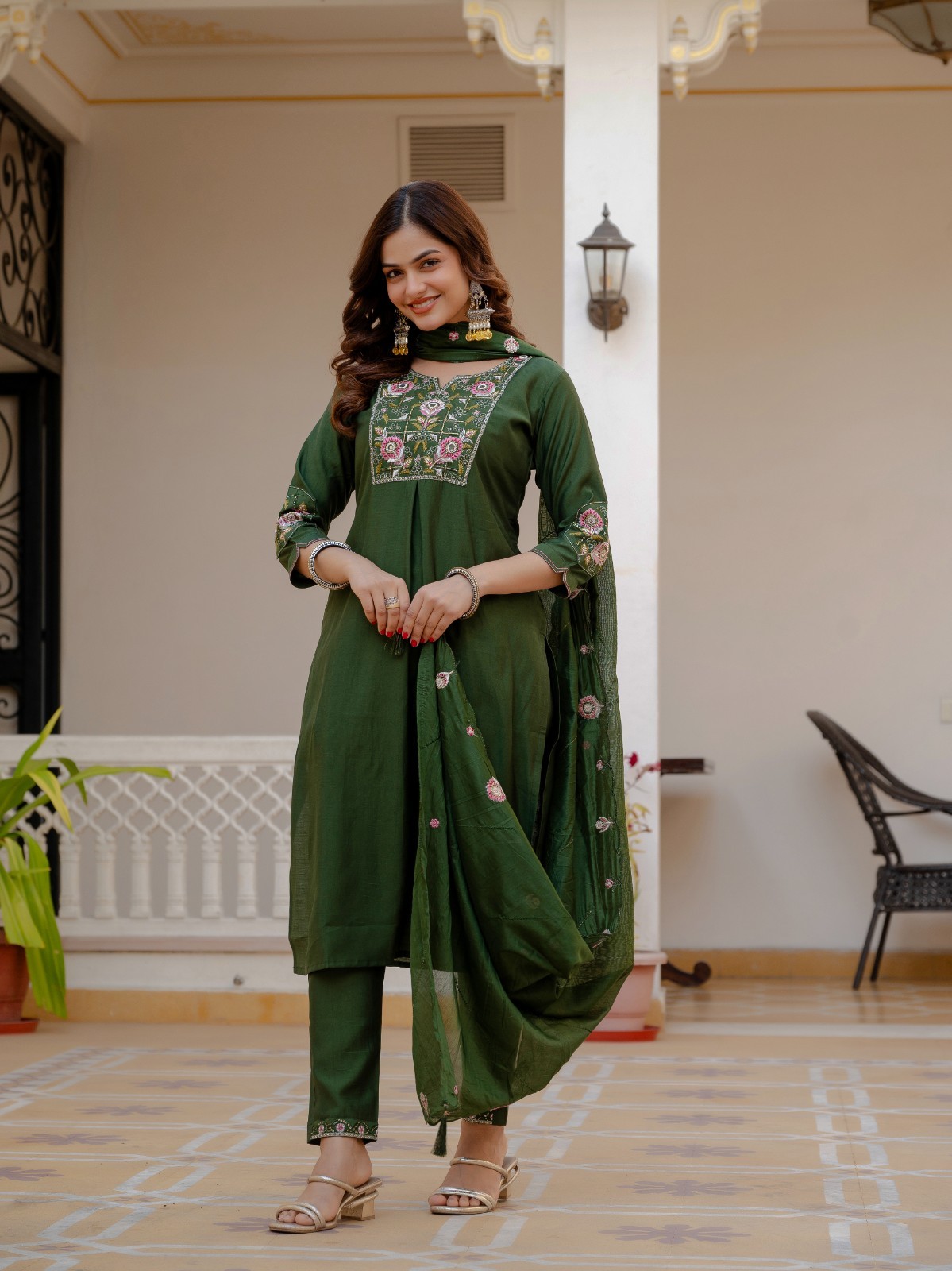 как выглядит Indian Designer Green Natural Silk Salwar Kameez With Net Dupatta For Women фото