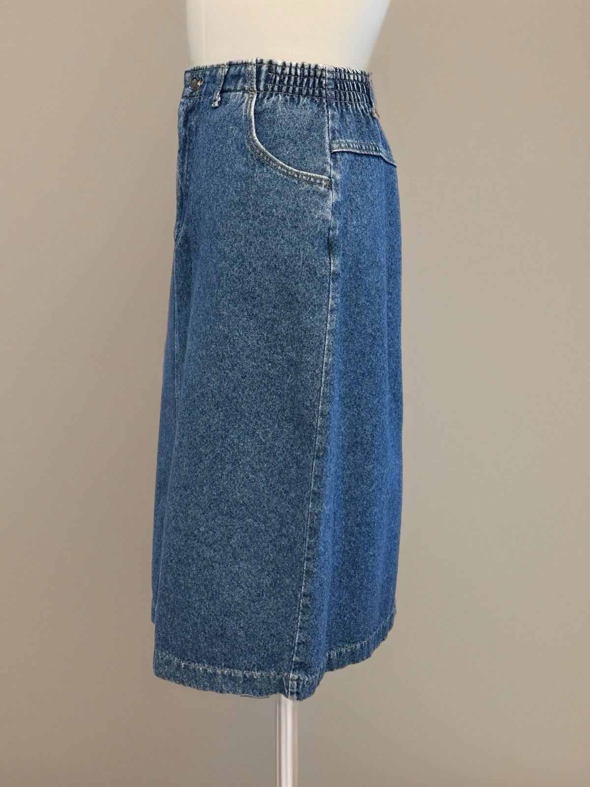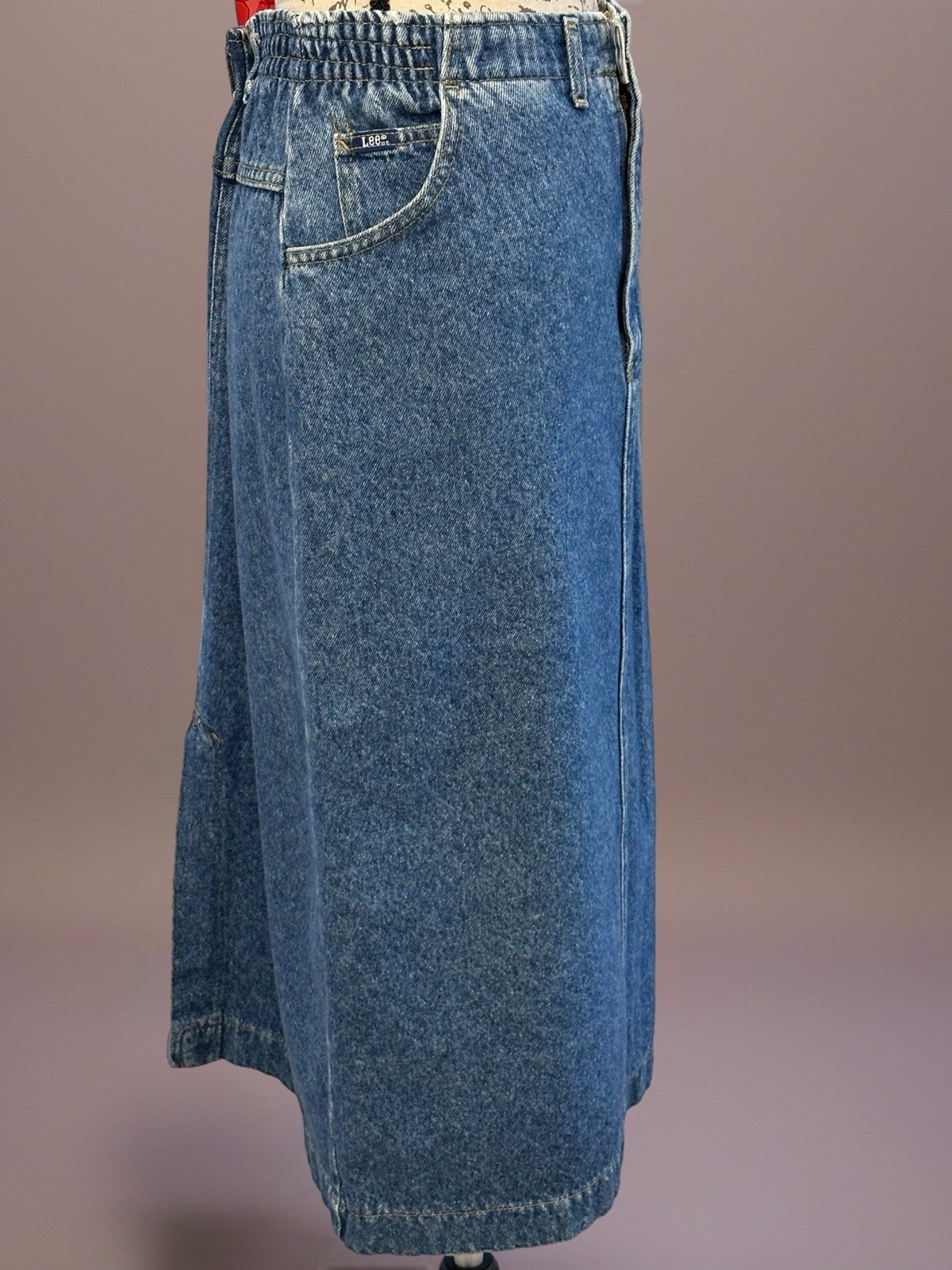 как выглядит Vintage Lees Midi Jean Pencil Skirt Circa 1980s w/ Kick Pleat Sz 12 / M фото