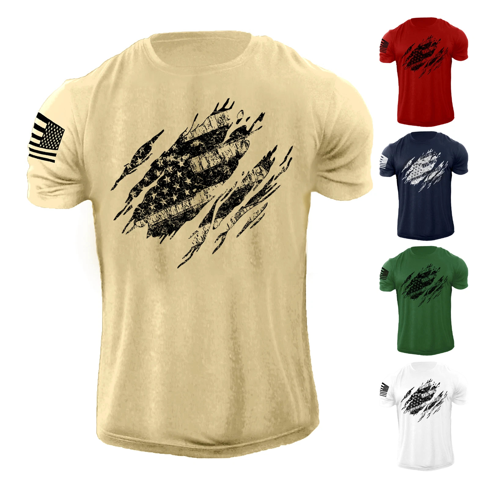 New Men's USA Distressed American Flag T Shirt Patriotic 100 Cotton Tee