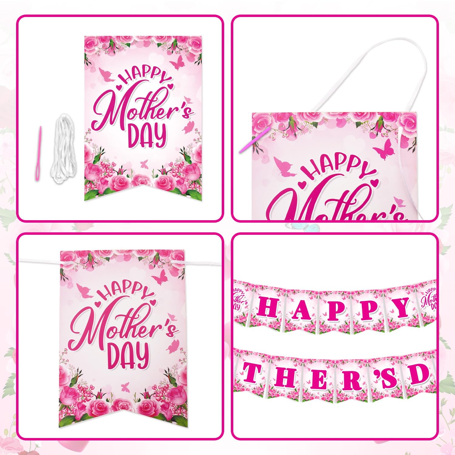 Mother's Day Decorations, Happy Mother's Day Banner for Party, Pre-Strung Banner