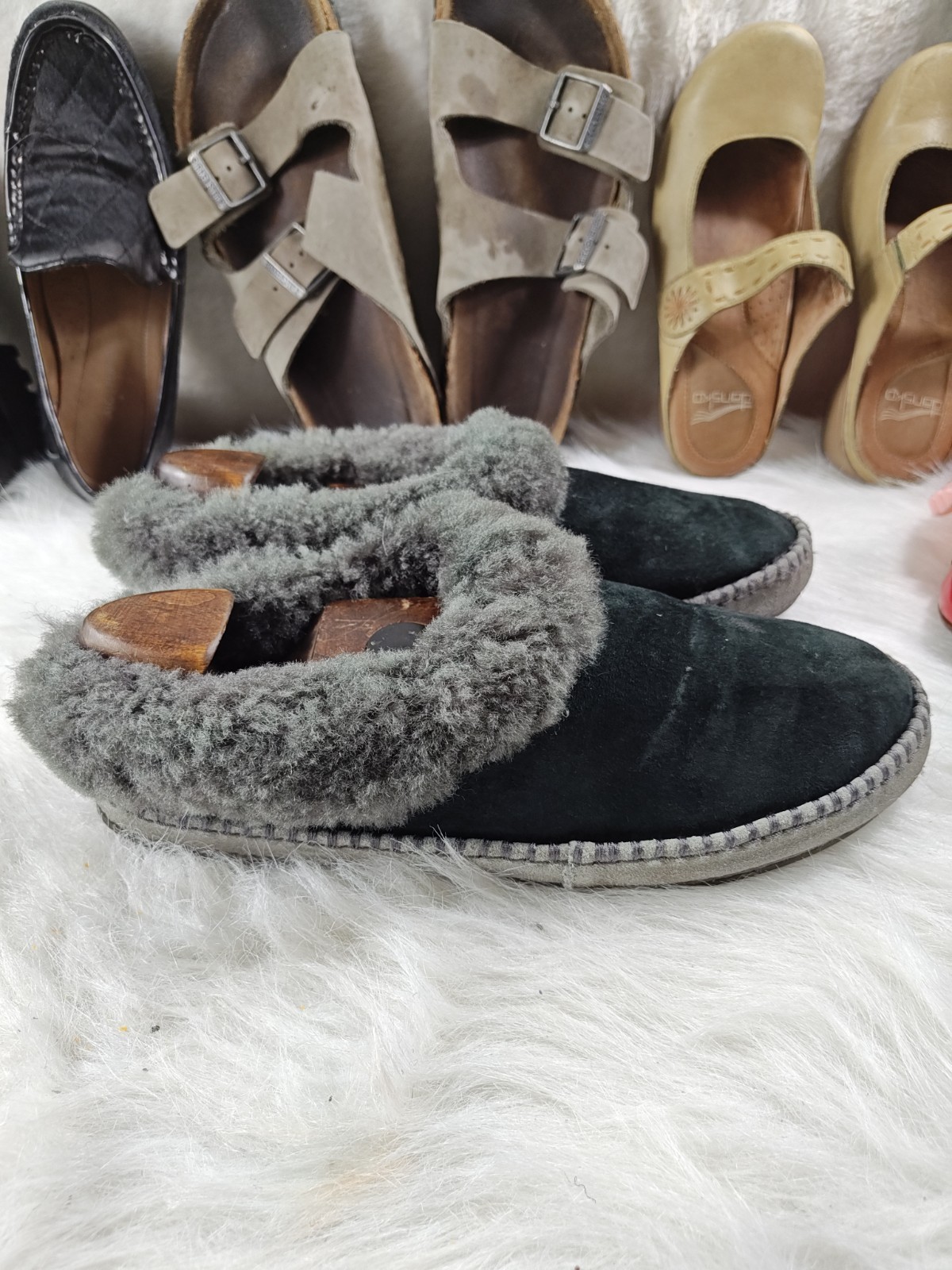 как выглядит UGG Black Gray Shearling Suede Slippers Mens Size 11 Cozy Comfort Slip-On Shoes фото