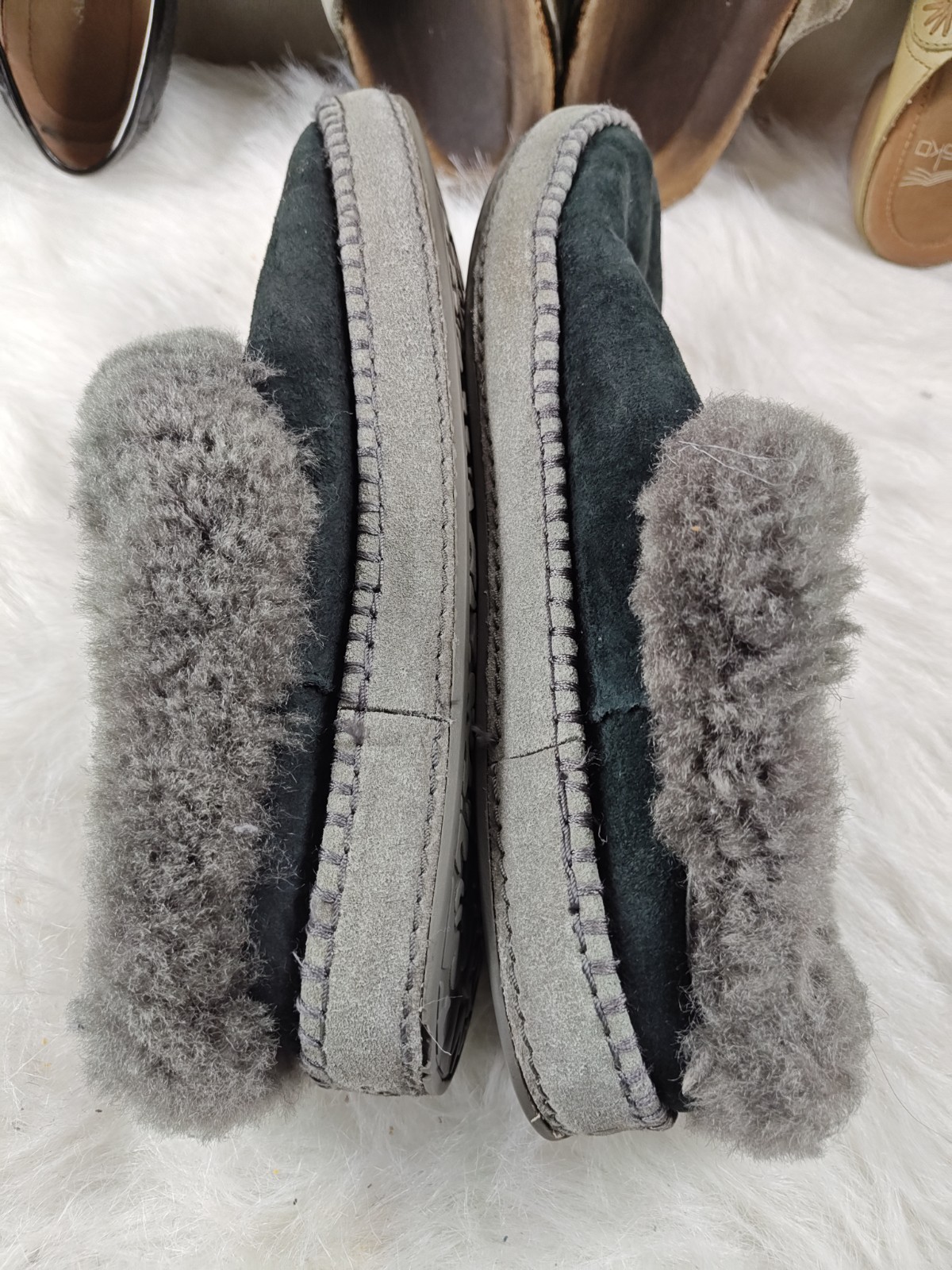 UGG Black Gray Shearling Suede Slippers Men's Size 11 Cozy Comfort Slip-On Shoes