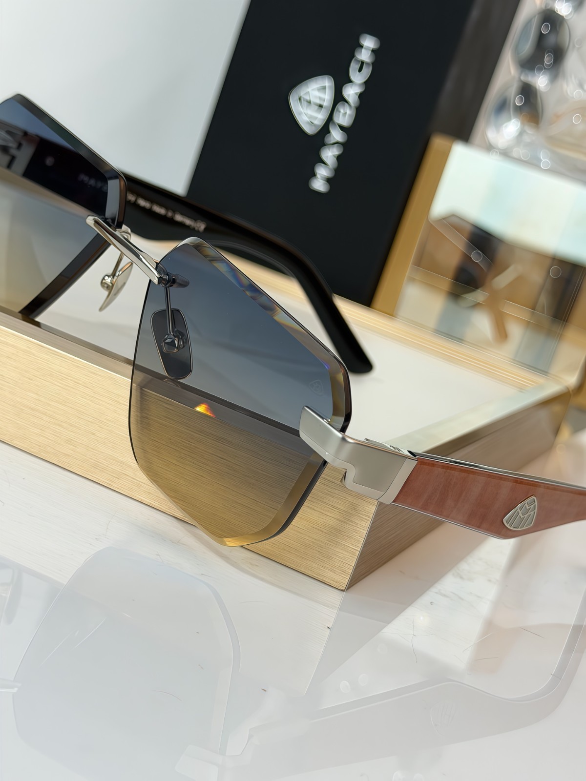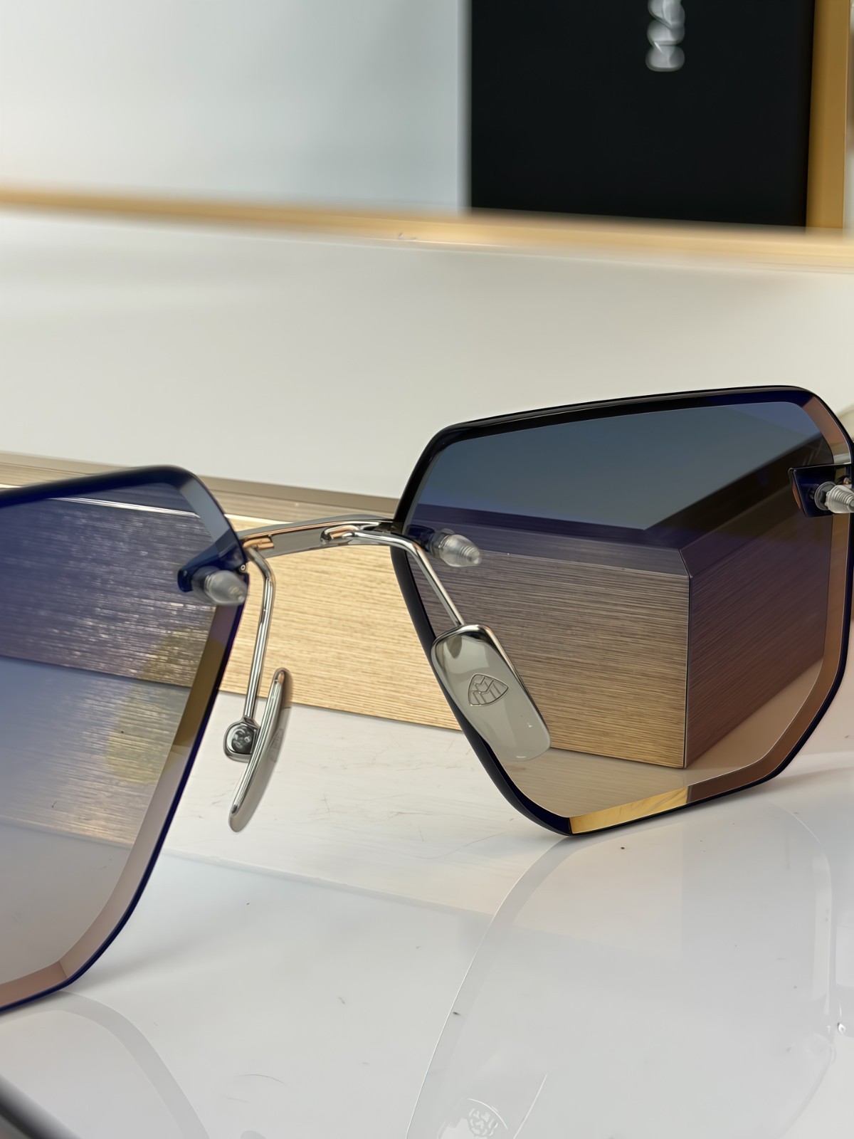 как выглядит Maybach THE VISIONIST SUN 4.0 Luxury Rimless Sunglasses Silver 61-13-145 New фото