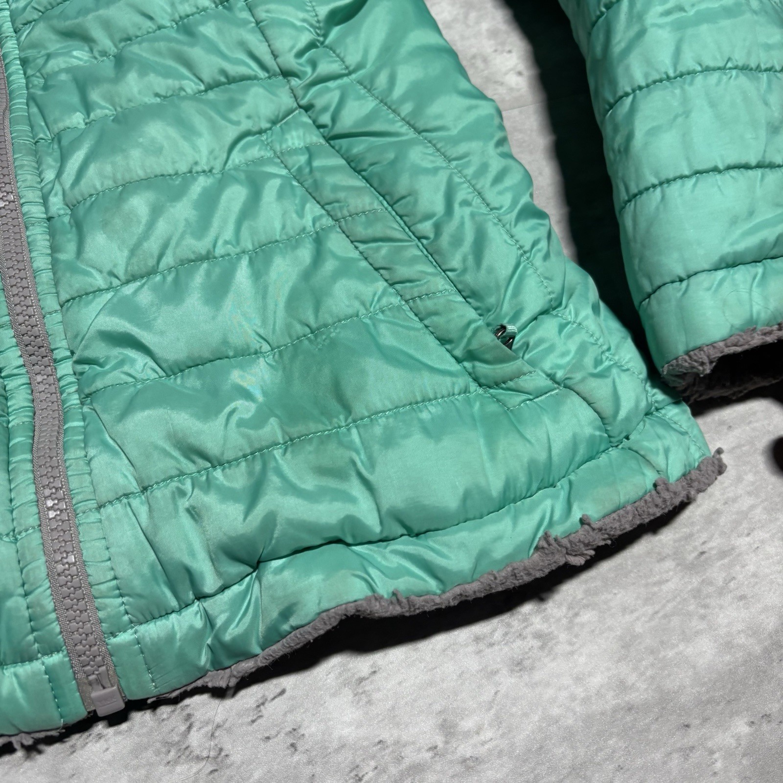 The North Face Jacket Girl's Small Gray Blue Reversible Fleece Winter Flaws