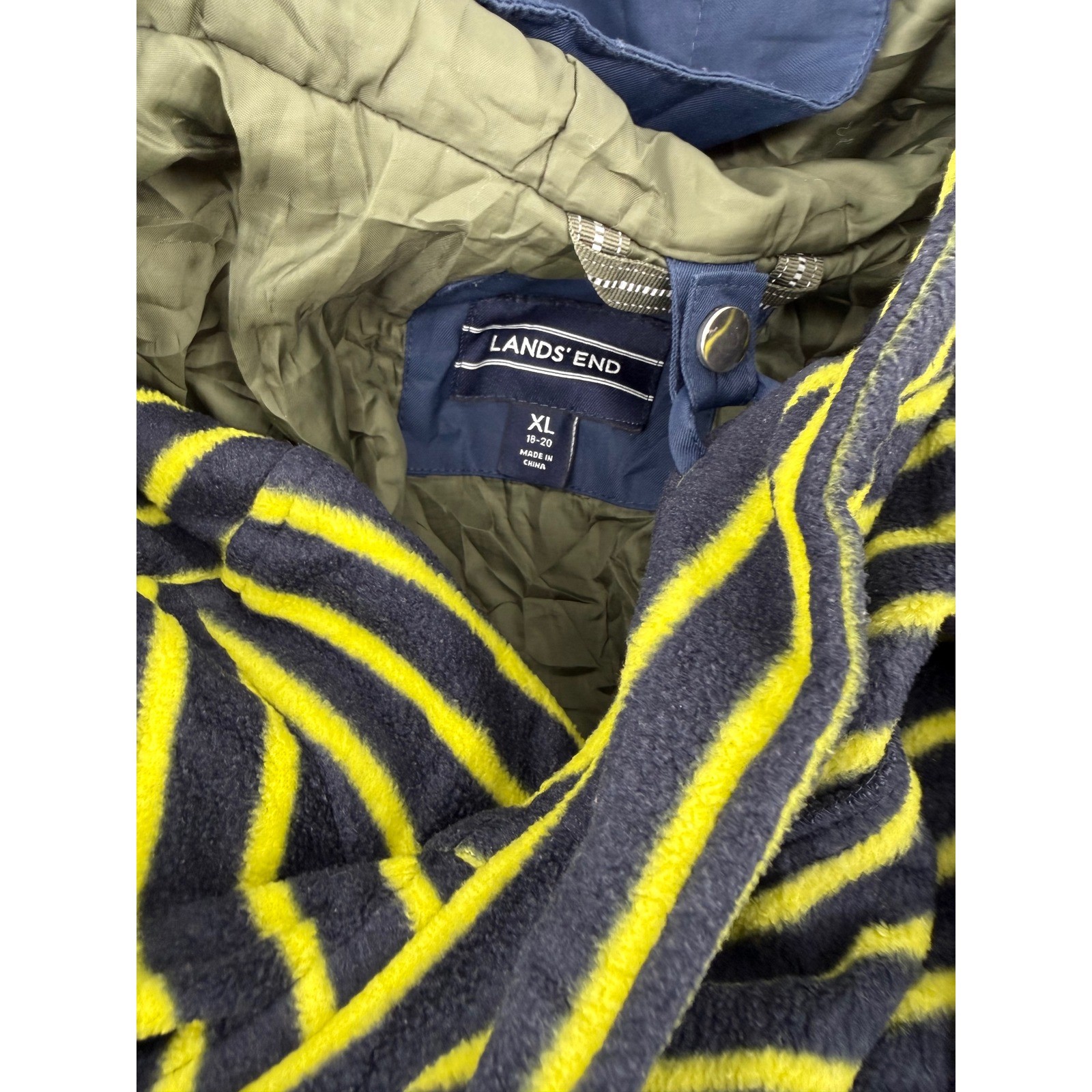 как выглядит Lands End Squall Grow Along Jacket Boys XL 18-20 Lime Green Navy Fleece Zip Out фото