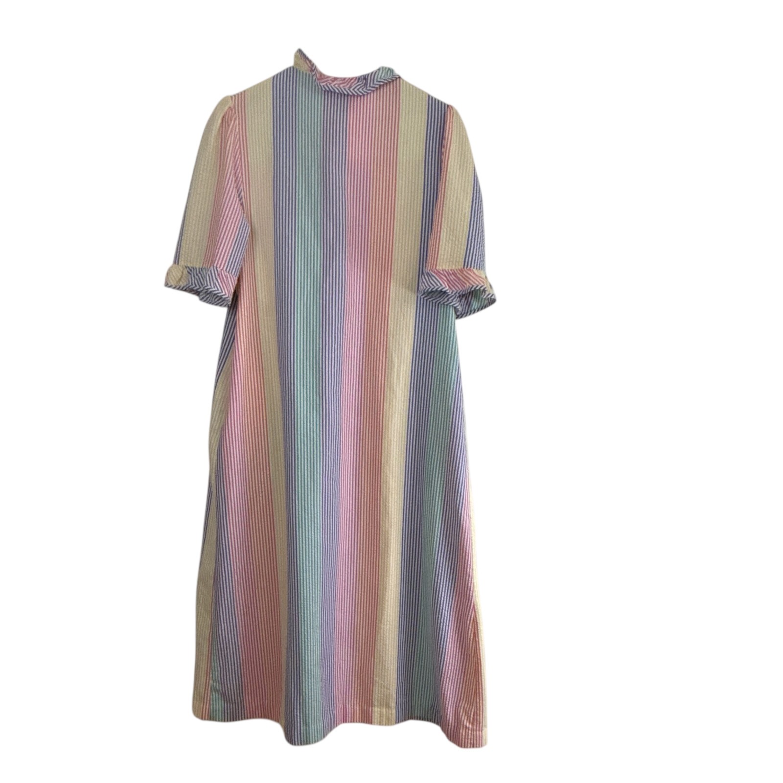 Vtg Saybury Nightgown Housecoat Robe Size 8 Rainbow Striped Seersucker 1/2 Zip