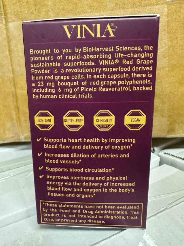 как выглядит Vinia Red Grape Powder Rapid Absorbtion Piceid Resveratrol Veggie 60 Capsules Fo фото
