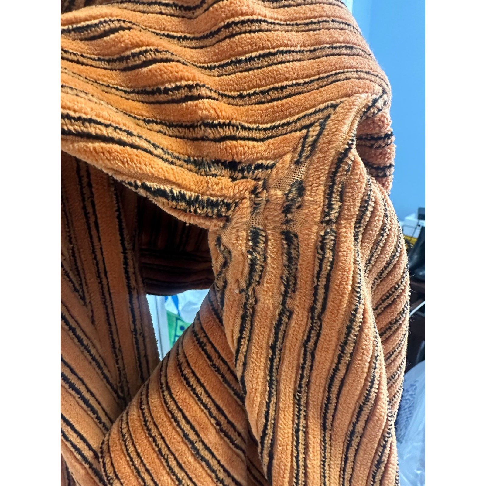 как выглядит Vintage 70s Bell Bottom Flare Pants Velvet Orange Black Striped Disco Fit Sz M фото