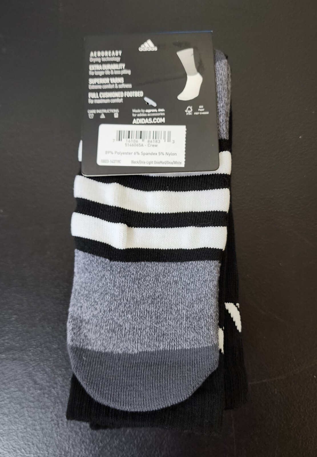 Adidas Mens Shoe Size 6 - 12 AeroReady Cushioned Crew Socks 3 Pair Pack