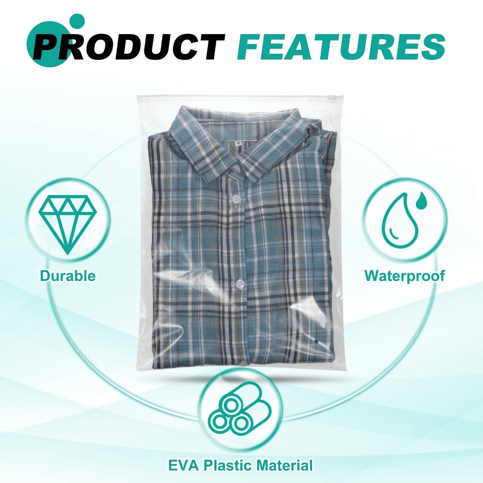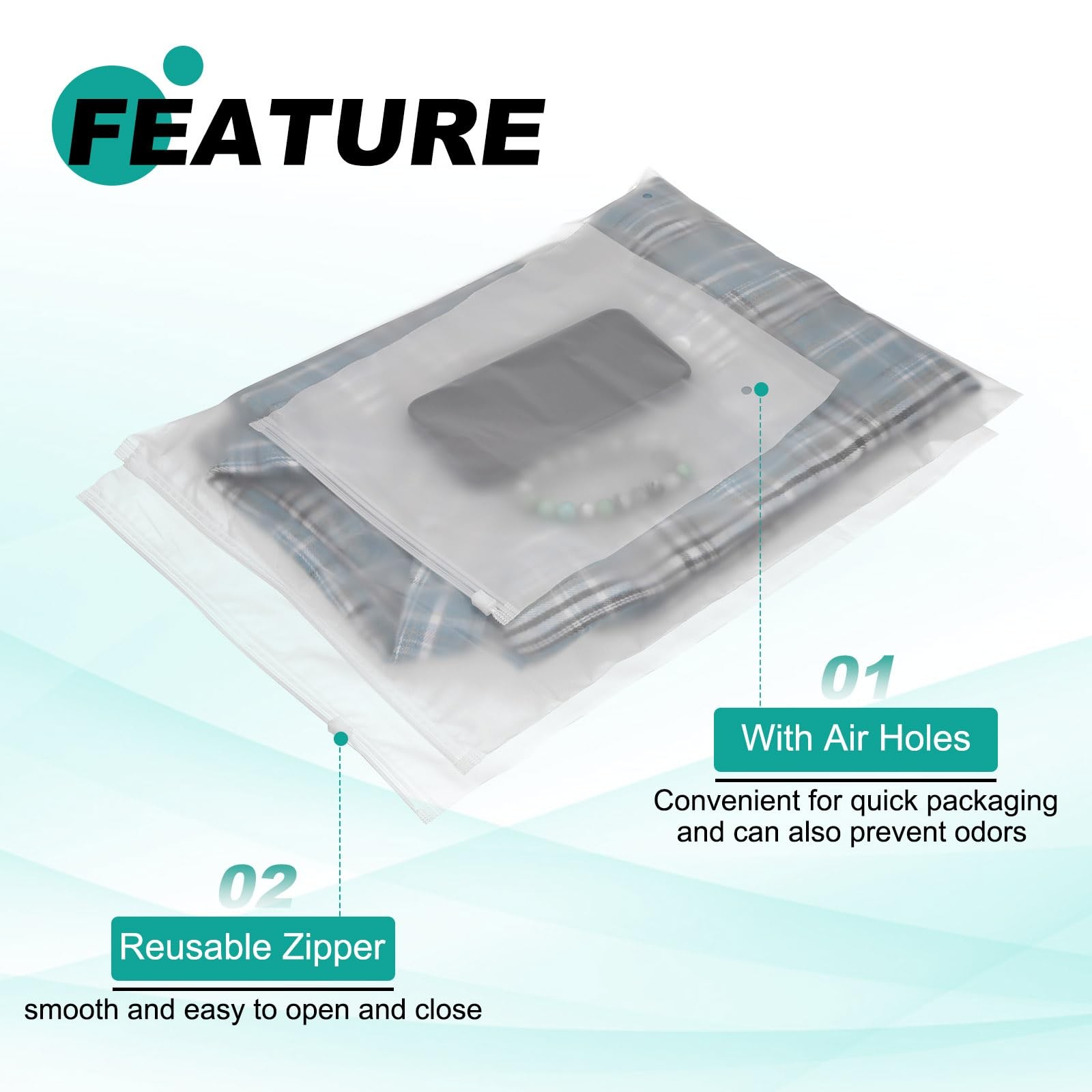 Included Components: 50Pcs Transparent Zipper Plastic Apparel Bags