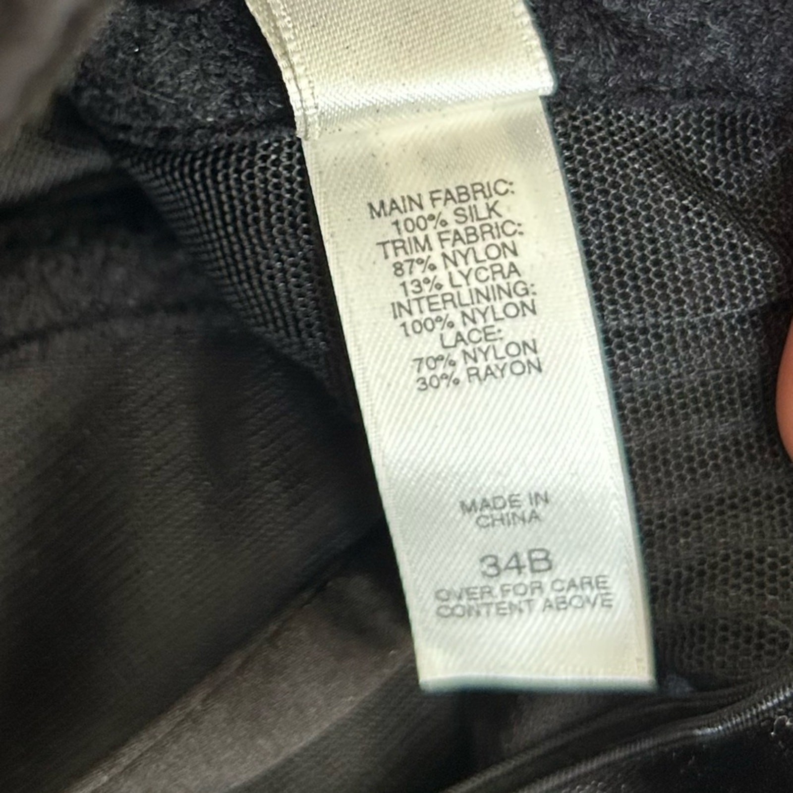 Victorias Secret Y2K 100 Silk Black Red Floral Print Lace Up Corset Top 34B