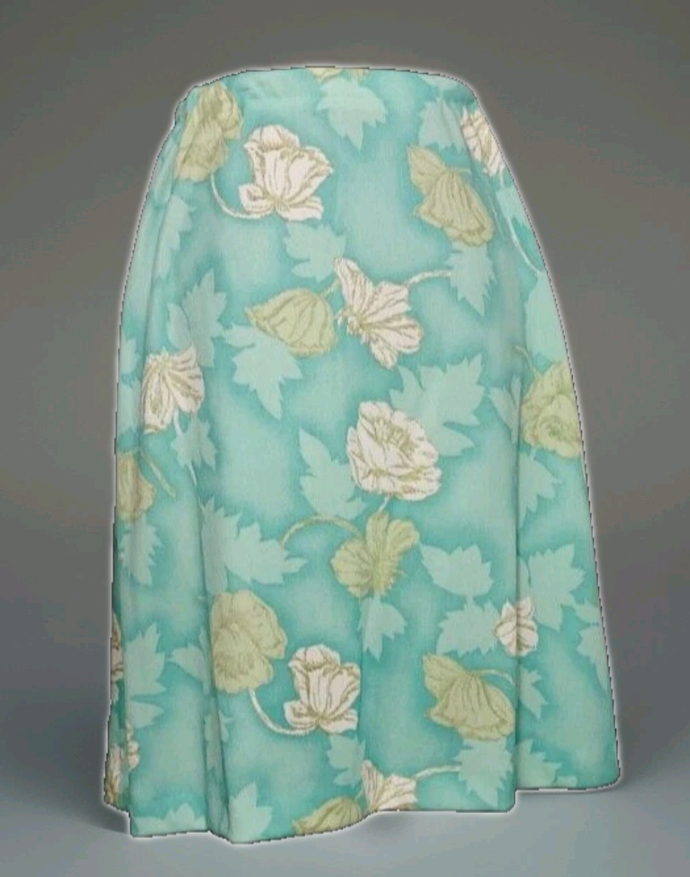 как выглядит Vintage 70s Two Piece Poly Skirt Set Pretty Green Floral - Women